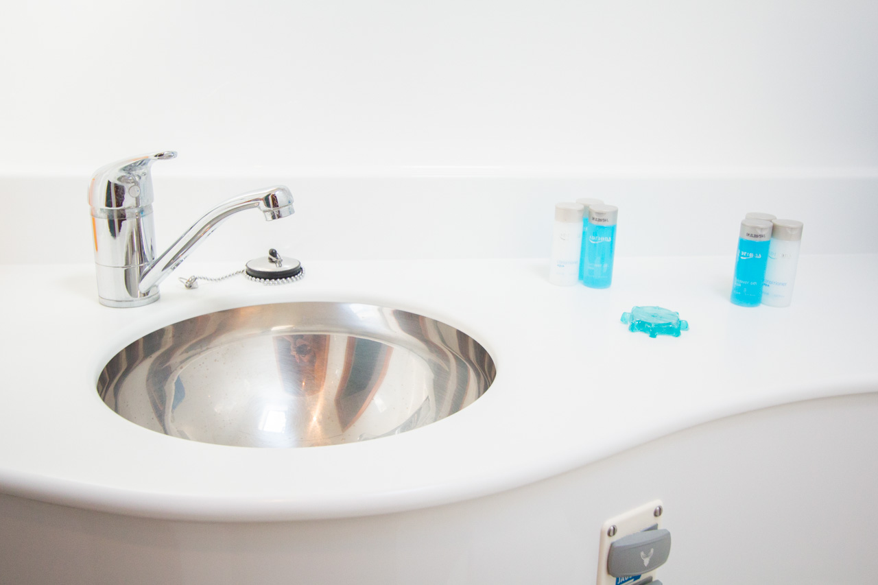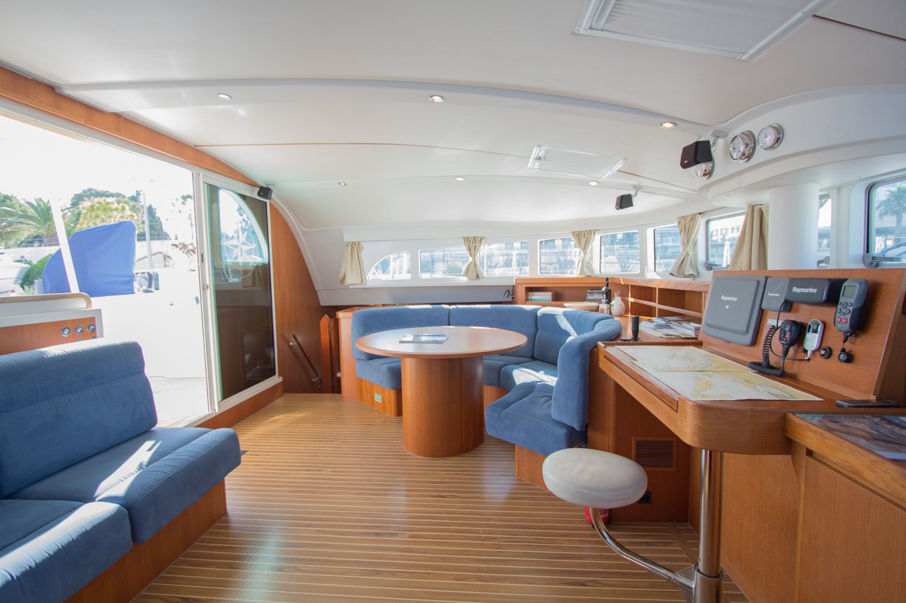 | Inside | Eiswürfelmaschine, Gasherd, Gefrierschrank, Generator, Geschirr, Geschirrspüler, Heizung, Klimaanlage, Kühlschrank, Ladegerät, Radio mit CD, Safe für Wertsachen, TV + DVD, Warmwasser, Watermaker, WC (elektr.) |