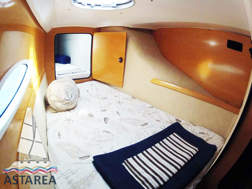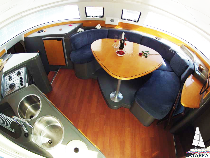 | Inside | Gasherd, Kühlschrank, Ladegerät, Luftpumpe für Beiboot, Pantryausstattung, Radio mit USB und Bluetooth, Warmwasser |
