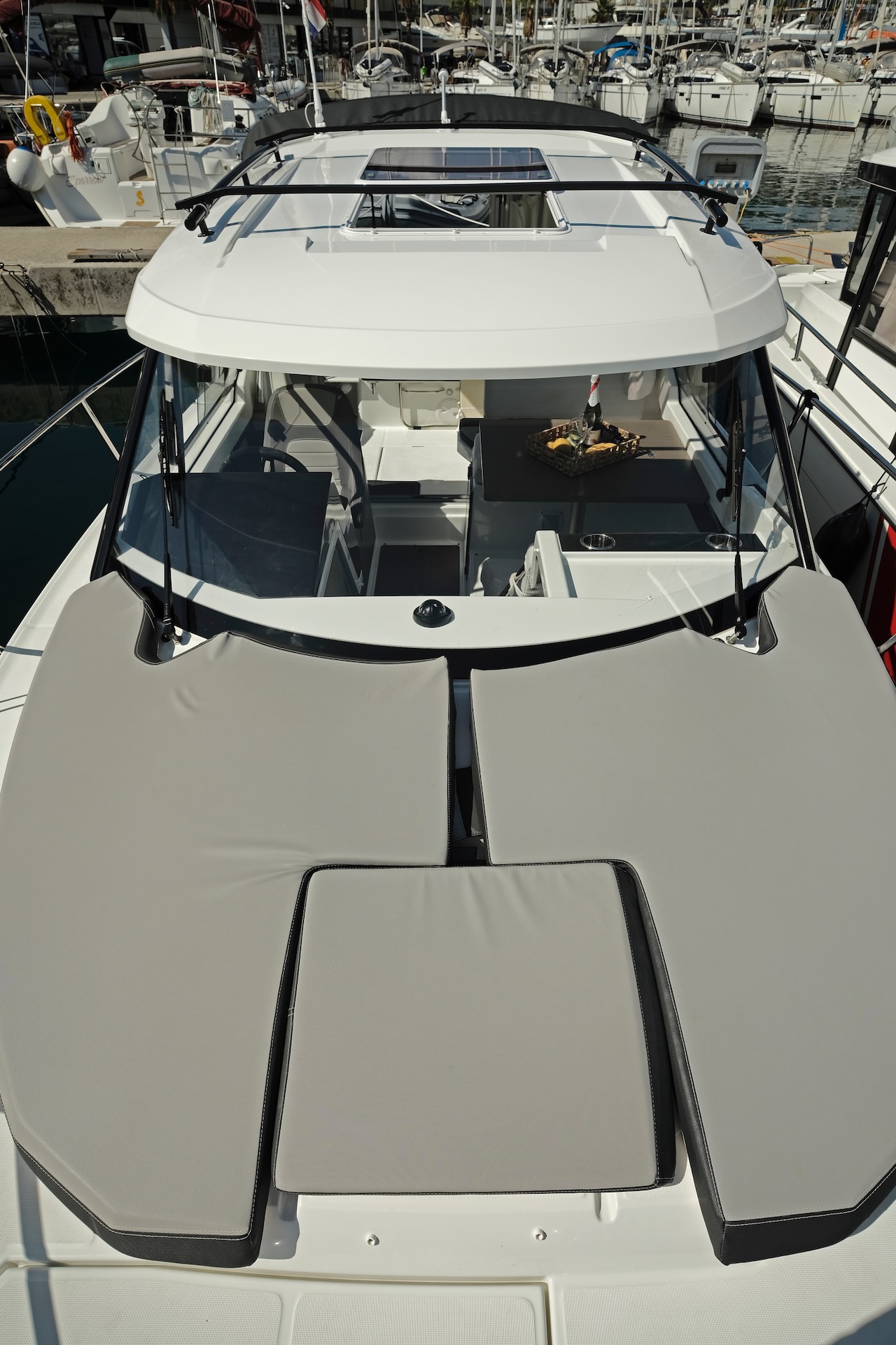 | Outside | 220 V-Landanschluss, Anker mit Kette, Badeleiter, Biminitop, Cockpitdusche, Deckpolster, elektr. Ankerwinsch, Festmacherleinen, Teakdeck |