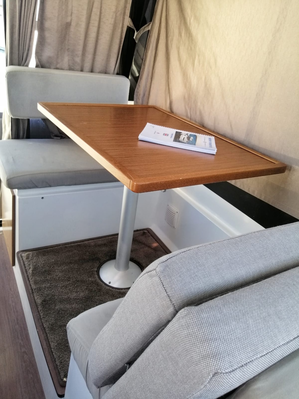 | Inside | Backofen, Gasherd, Kühlschrank, Ladegerät, Landstromkabel, Pantryausstattung, Radio mit CD, AUX und USB, Salontisch absenkbar, TV, Warmwasser |