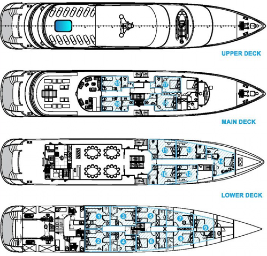 | Kabinen: | 3+1 | Kojen: | 6+1 |