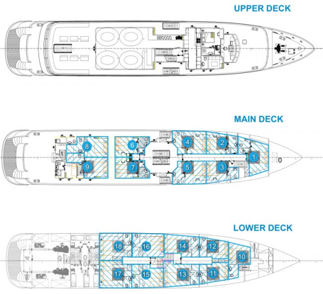 | Kabinen: | 3+1 | Kojen: | 6+1 |