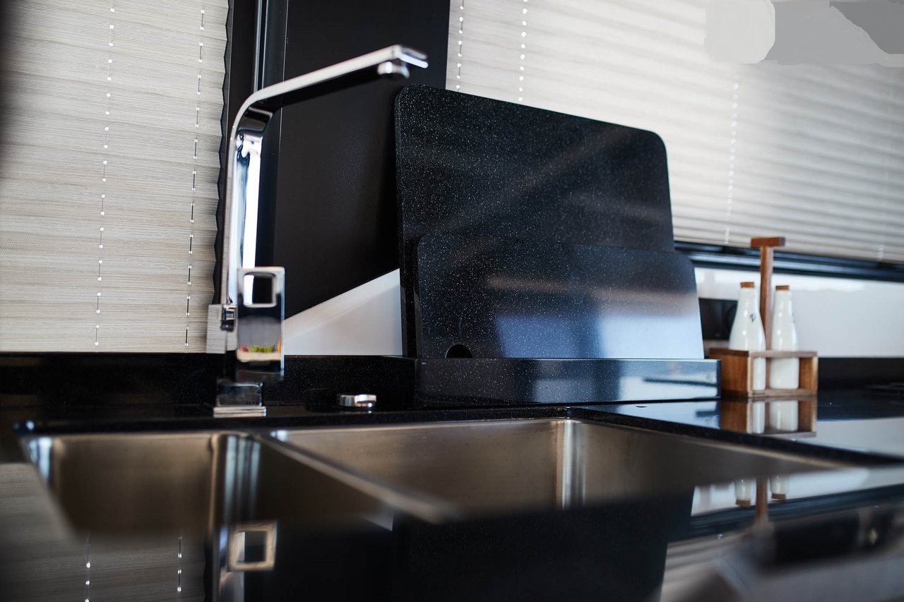 | Inside | Backofen, Elektroherd, Klimaanlage (Landstrom), Kühlschrank, Landstromkabel, LED-Innenleuchten, Pantryausstattung, Radio mit CD/USB/MP3/Aux-In/Bluetooth, TV, Ventilatoren in Kabinen, Warmwasser |