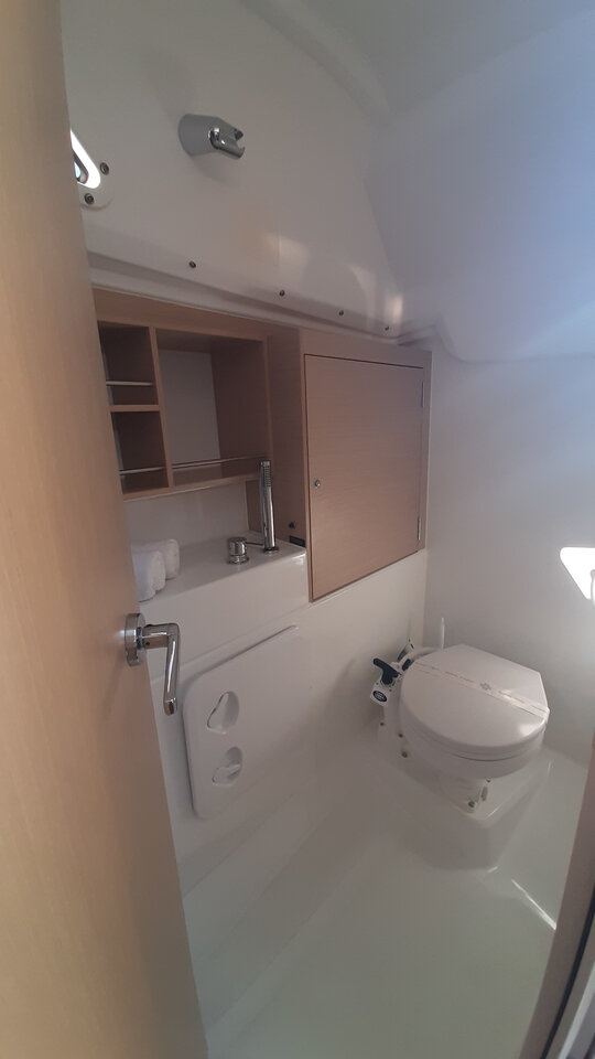 | Outside | 220 V-Landanschluss, Anker mit Kette, Biminitop, Bootshaken, Cockpitdusche, Cockpitlautsprecher, Cockpittisch, elektr. Ankerwinsch, Fender, Gangway, Kugelfender, Solaranlage, Sprayhood |