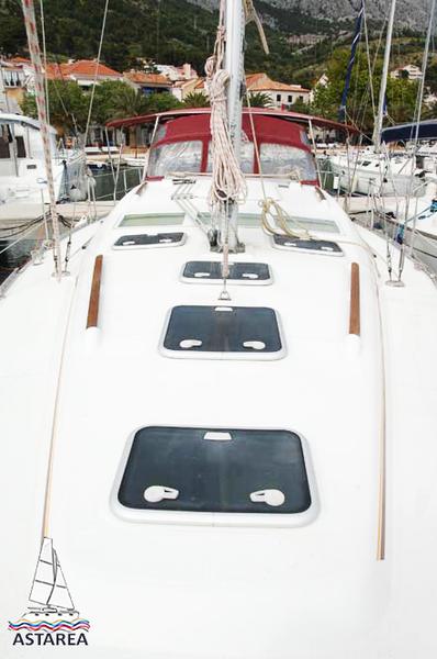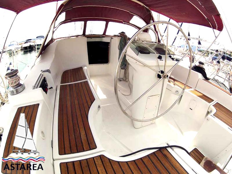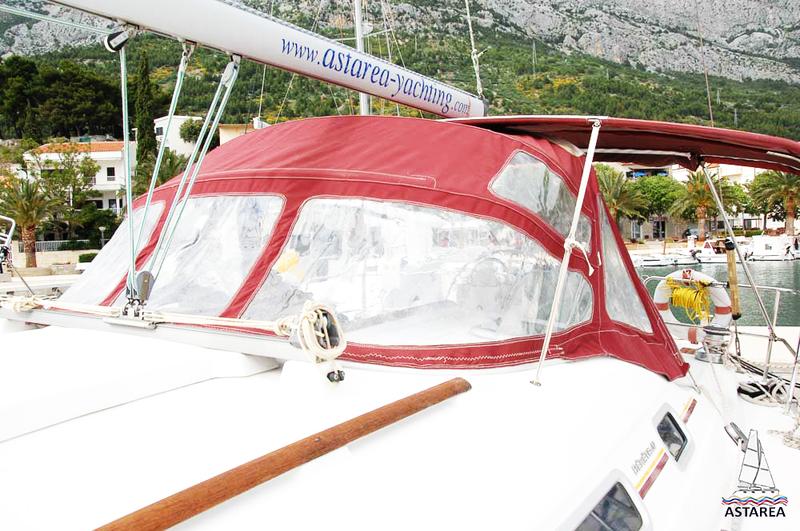 | Outside | 220 V-Landanschluss, Anker mit Kette, Biminitop, Bootshaken, Cockpitdusche, Cockpitlautsprecher, Cockpittisch, Deckbürste, elektr. Ankerwinsch, Fender, Festmacherleinen, Gangway, Sprayhood, Wasserschlauch, Windex |