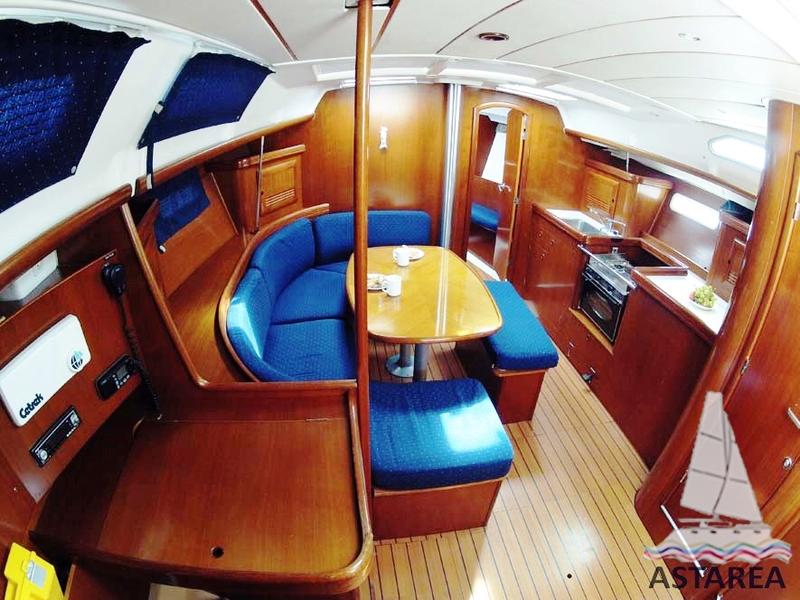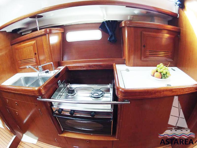 | Inside | 12V Steckdose, Backofen, Kühlschrank, Ladegerät, Luftpumpe für Beiboot, Pantryausstattung, Radio mit CD, Salontisch absenkbar, Warmwasser |