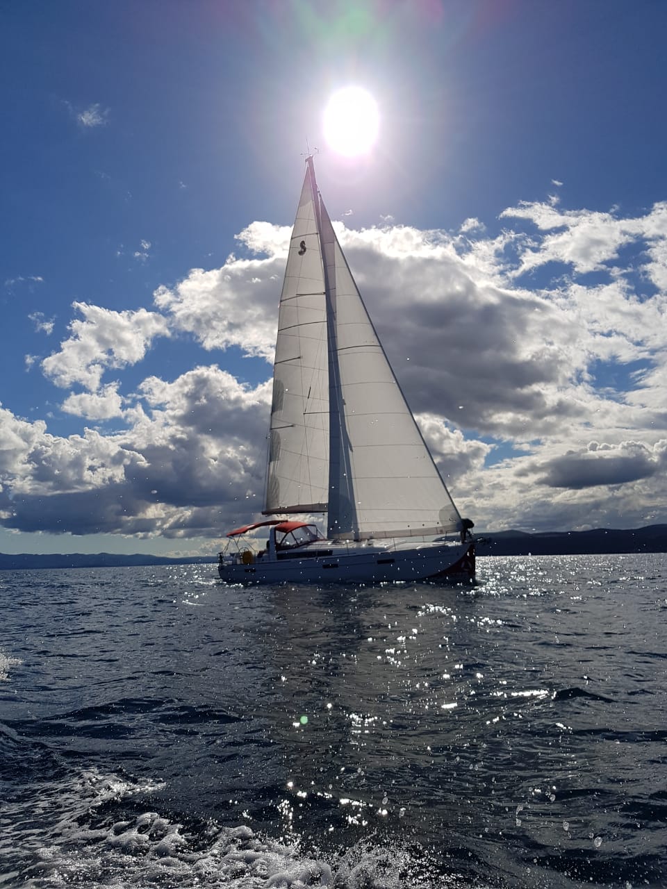 Die gebuchte Option des Gennakkers hat zunächst kurzzeitig für Verwirrung gesorgt, das zusätzliche Segel wurde dann aber umgehend von einem anderen Vercharterer zur verfügung gestellt. Allerdings waren lediglich die beiden Schotleinen sowie die erforderlichen Blöcke dabei. Dies fiel uns aber erst bei dem ersten Versuch den Gennaker in den Einsatz zu bringen auf. Es fehlte die Tackline. Bei der Übernahme der Yacht wurde uns ein kurzer Lampen als Tackline verkauft.