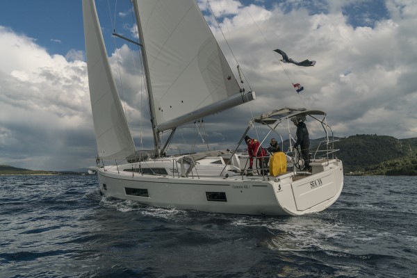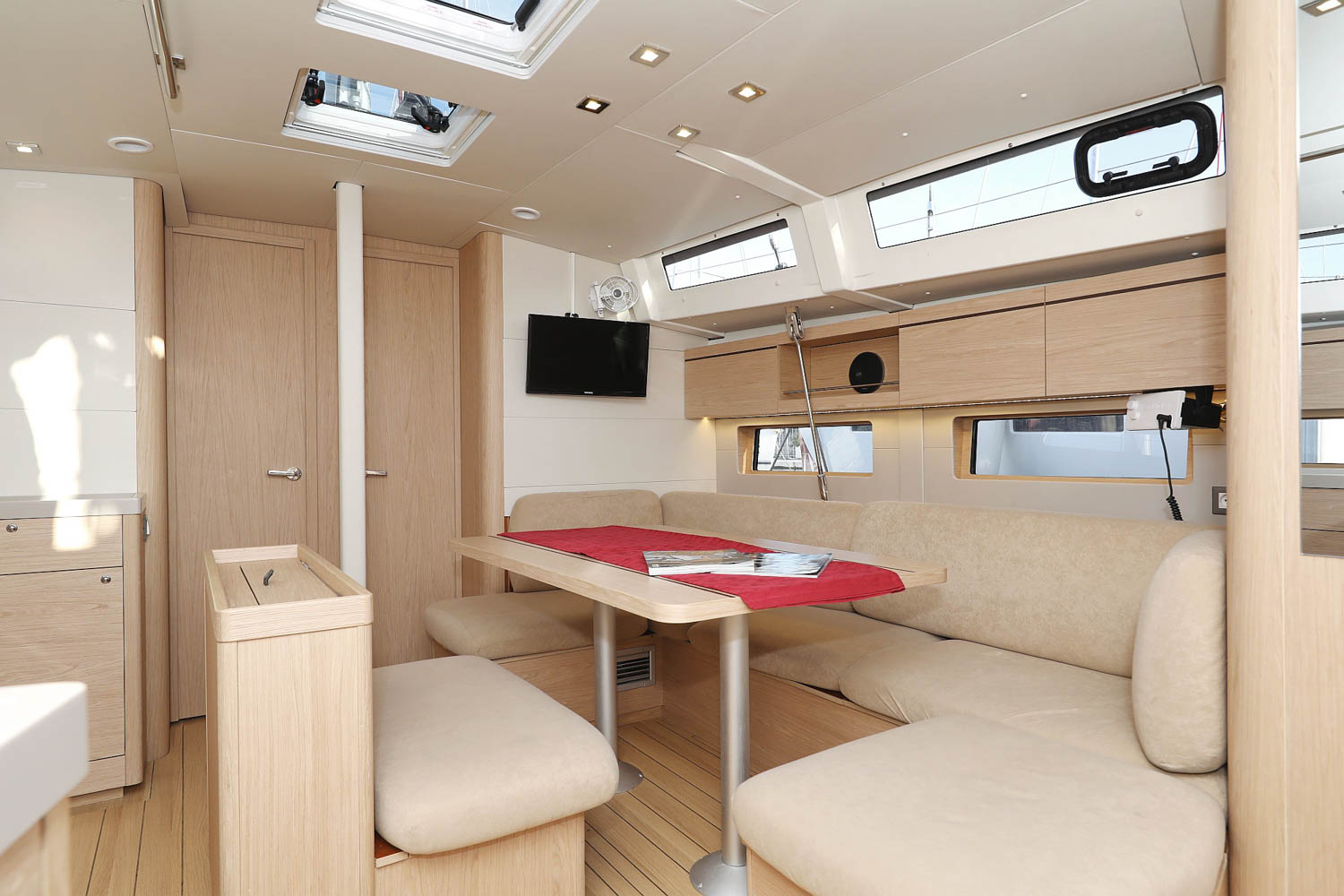 | Outside | 220 V-Landanschluss, Ankerkettenzähler, Badeplattform, Biminitop, Bootshaken, Cockpitdusche, Cockpitkühlschrank, Cockpitlautsprecher, Cockpitpolster, Cockpittisch, elektr. Ankerwinsch, Fender, Gangway, Solaranlage, Sprayhood, Teak im Cockpit |