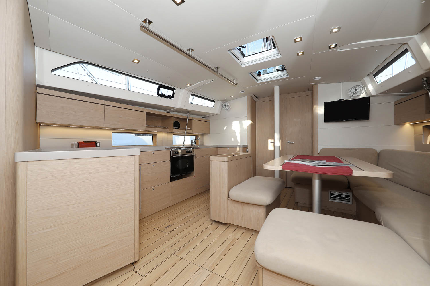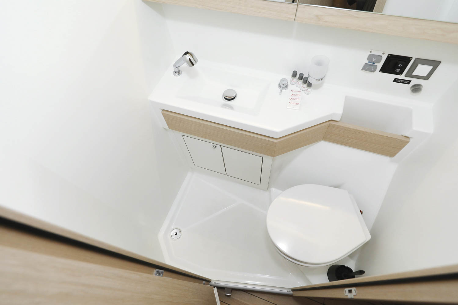 | Inside | Backofen, Eisbox, Fäkalientank, Gasherd, Heizung, Kaffeemaschine, Klimaanlage (Landstrom), Kühlschrank, Ladegerät, Landstromkabel, Pantryausstattung, Radio mit USB, TV, USB Steckdosen in den Kabinen, Ventilatoren in Kabinen, Warmwasser, WC (elektr.) |