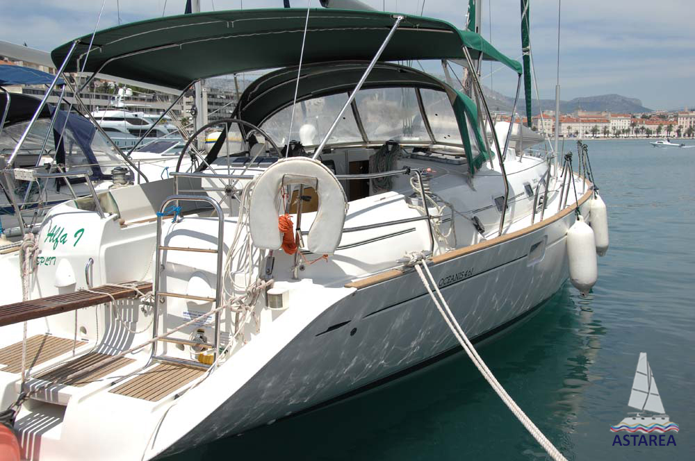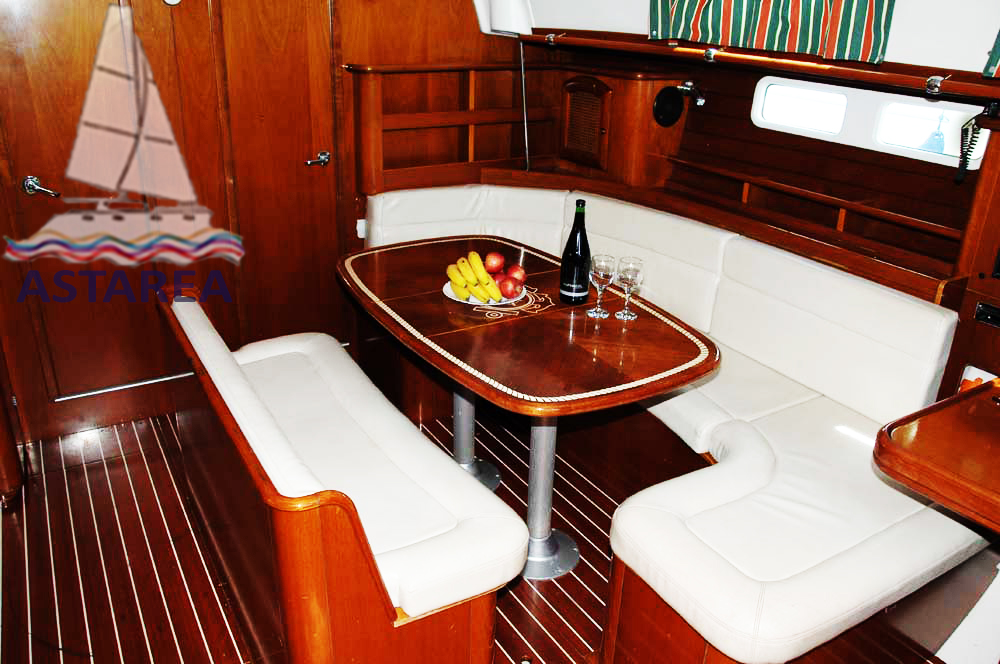 | Outside | 220 V-Landanschluss, Anker mit Kette, Biminitop, Bootshaken, Cockpitdusche, Cockpitlautsprecher, Cockpitpolster, Cockpittisch, Deckbürste, elektr. Ankerwinsch, Fender, Festmacherleinen, Gangway, Sprayhood, Wasserschlauch, Windex |