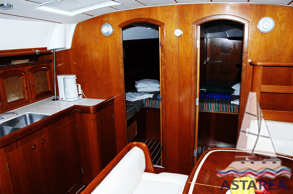 | Navigation | Fernglas, GPS mit Kartenplotter im Salon, Hafenhandbücher, Handpeilkompass, Kompass, Seekarten, Sumlog |