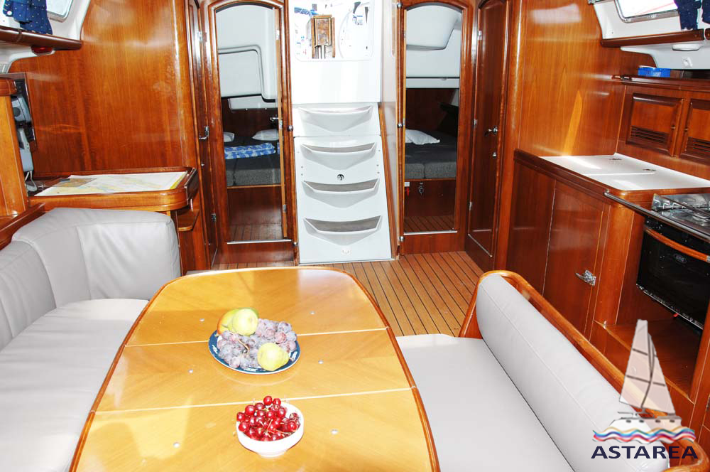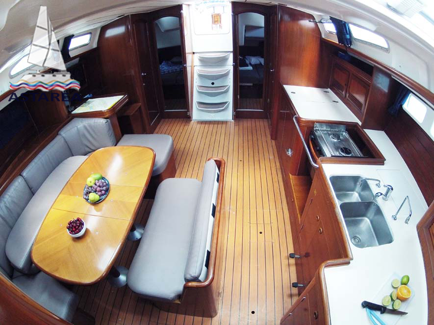 | Inside | 12V Steckdose, Backofen, Kühlschrank, Ladegerät, Luftpumpe für Beiboot, Pantryausstattung, Radio mit CD, Salontisch absenkbar, Warmwasser |