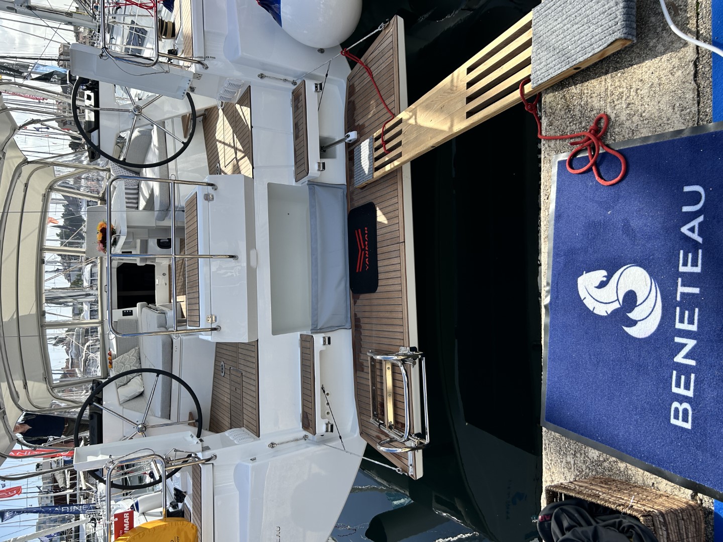 | Outside | 220 V-Landanschluss, Anker mit Kette, Badeplattform elektr., Biminitop, Bootshaken, Cockpitdusche, Cockpitlautsprecher, Cockpitpolster, Cockpittisch, elektr. Ankerwinsch, Fender, Gangway, Kugelfender, Sprayhood |