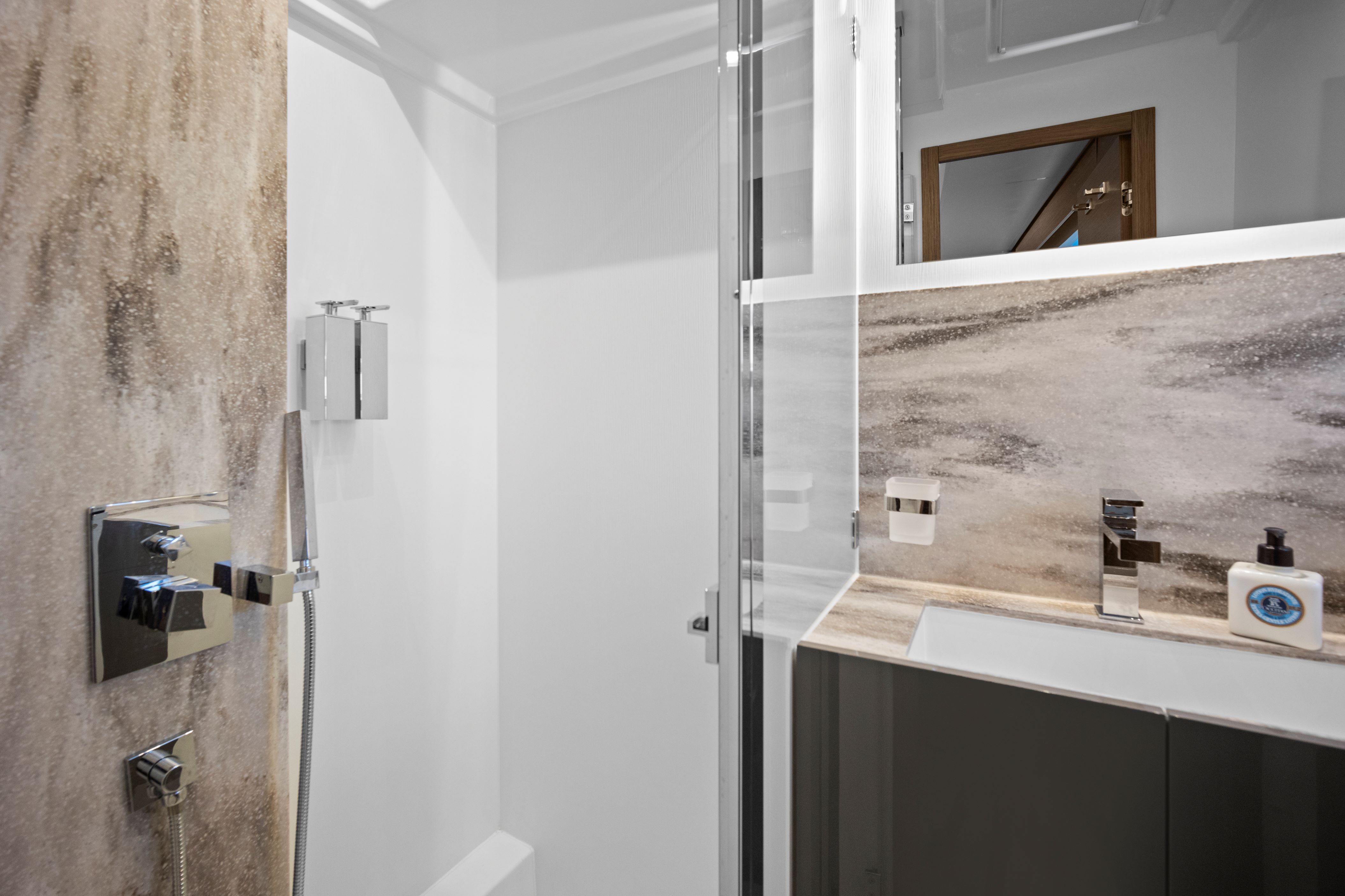 | Inside | Eiswürfelmaschine, Generator, Geschirrspüler, Inverter 12V/220V, Klimaanlage (ohne Landstrombedarf), Landstromkabel, Lautsprecher im Salon, Süßwasser-Aufbereitungsanlage, TV, Waschmaschine |