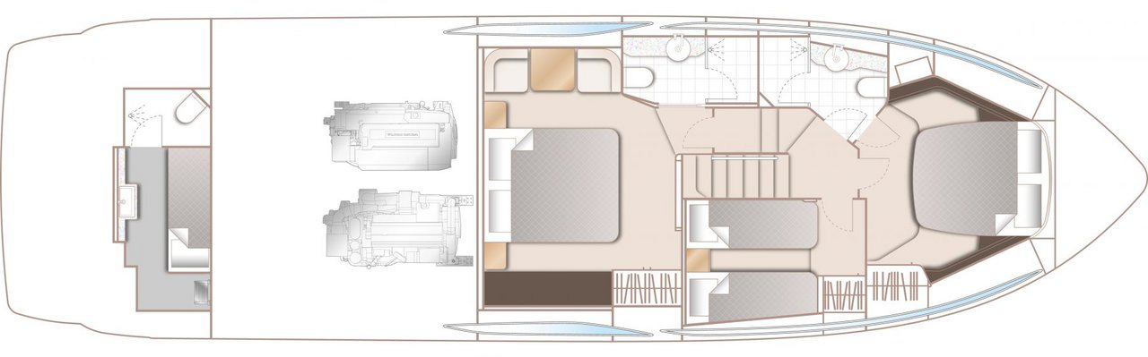 | Inside | 220V Steckdosen, Fäkalientank, FUSION Sound System, Generator, Heizung, Klimaanlage (ohne Landstrombedarf), Lautsprecher in Salon und Cockpit, Pantryausstattung, Salontisch absenkbar |