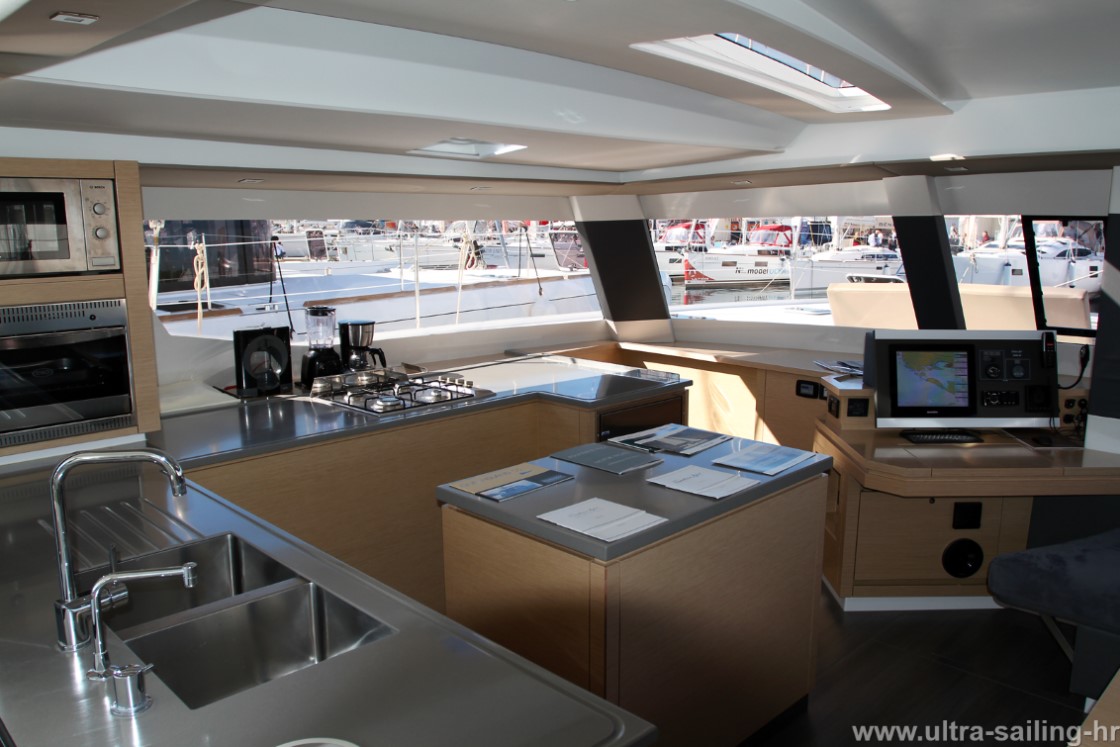 | Inside | Gasherd mit Backofen, Gefrierschrank, Generator, Heizung, Kaffeemaschine, Klimaanlage (ohne Landstrombedarf), Kühlschrank, Ladegerät, Mikrowelle, Pantryausstattung, Radio mit CD und USB, Salontisch absenkbar, Spülmaschine, TV, Warmwasser, Watermaker |