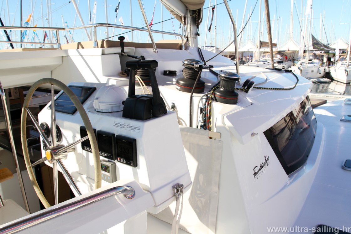 | Outside | 220 V-Landanschluss, Anker mit Kette, Biminitop, Bootshaken, Cockpitdusche, Cockpitlautsprecher, Cockpittisch, elektr. Ankerwinsch, elektr. Winsch, Fender, Gangway, Kugelfender, Solaranlage |