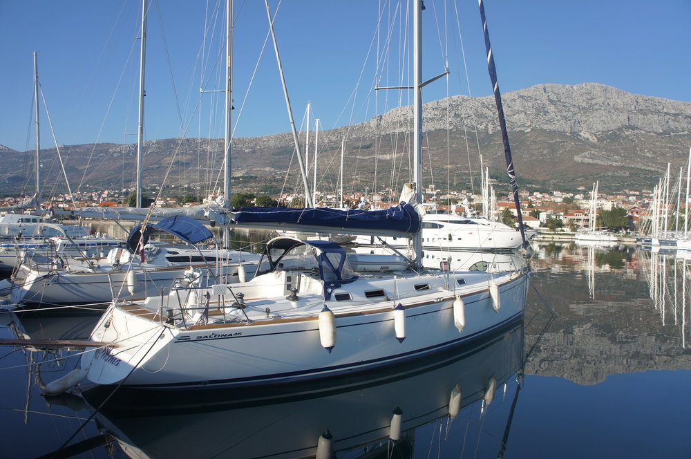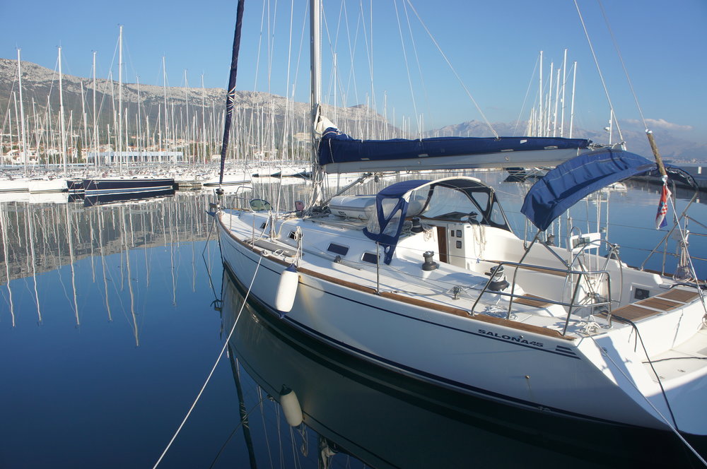 | Outside | Anker mit Kette, Badeleiter, Biminitop, Cockpitdusche, Cockpitlautsprecher, Cockpittisch, elektr. Ankerwinsch, Gangway, Sprayhood, Teak im Cockpit |