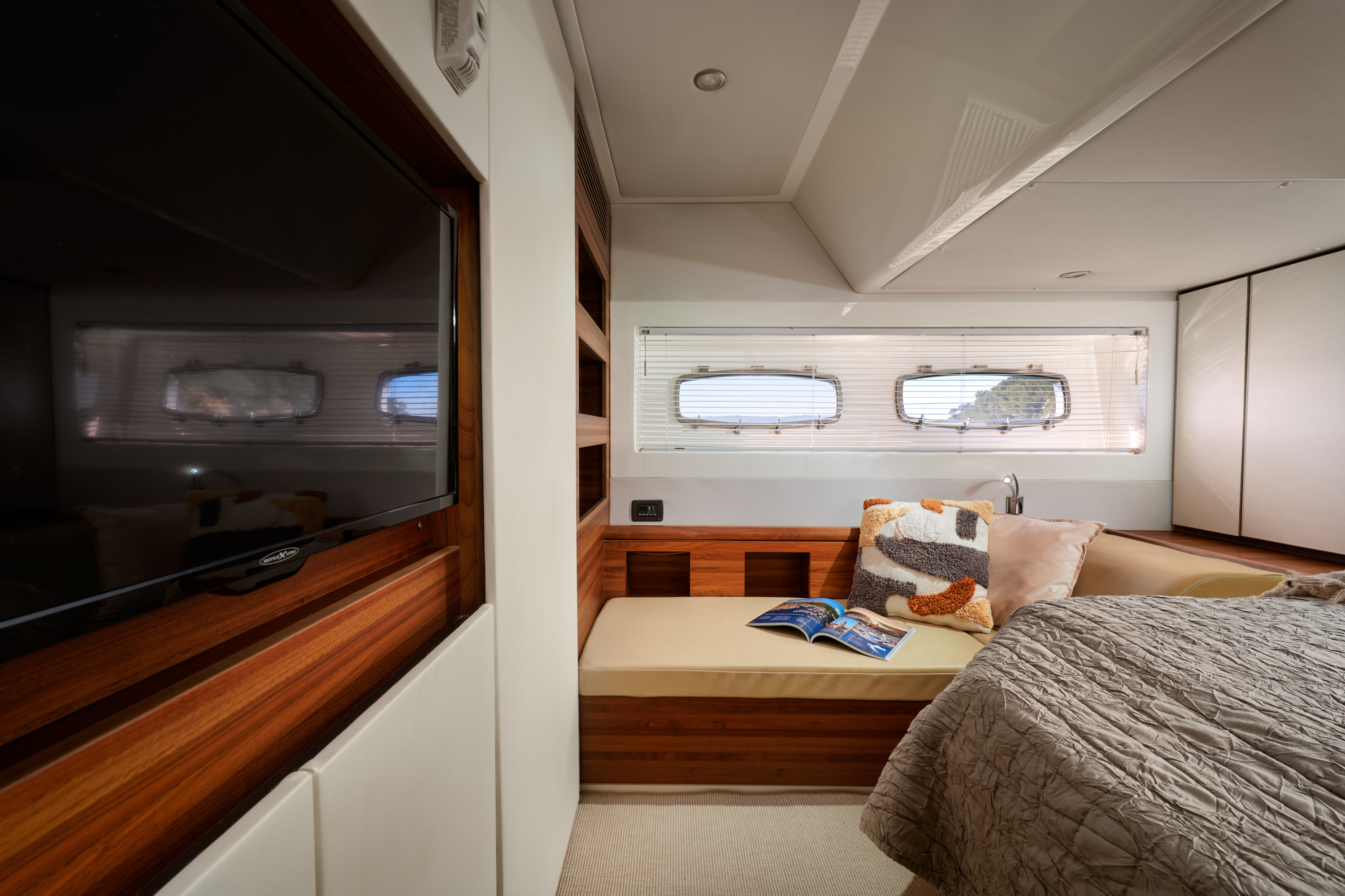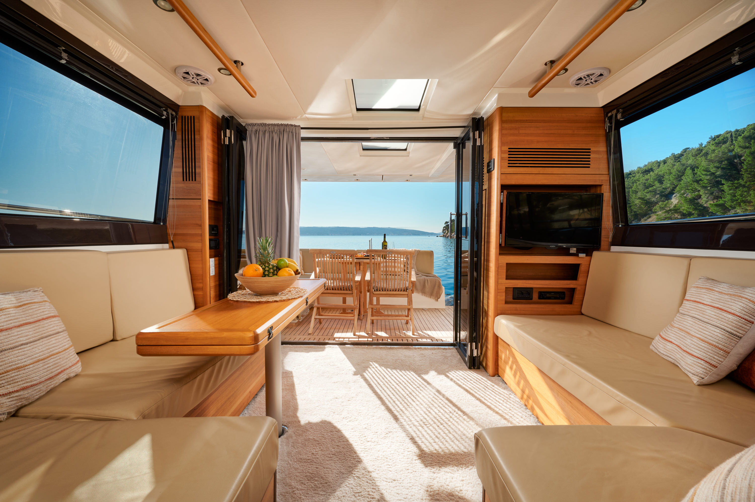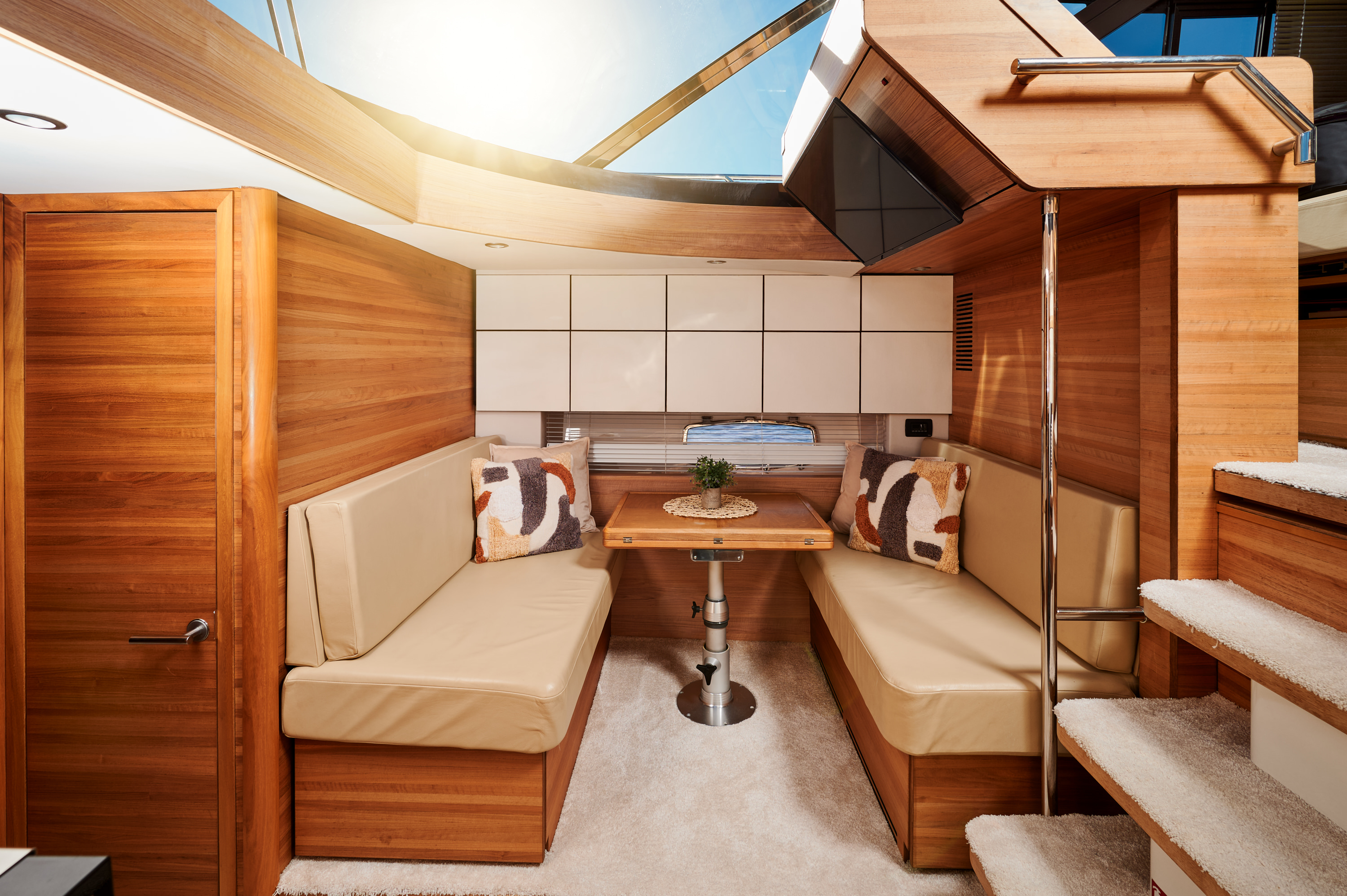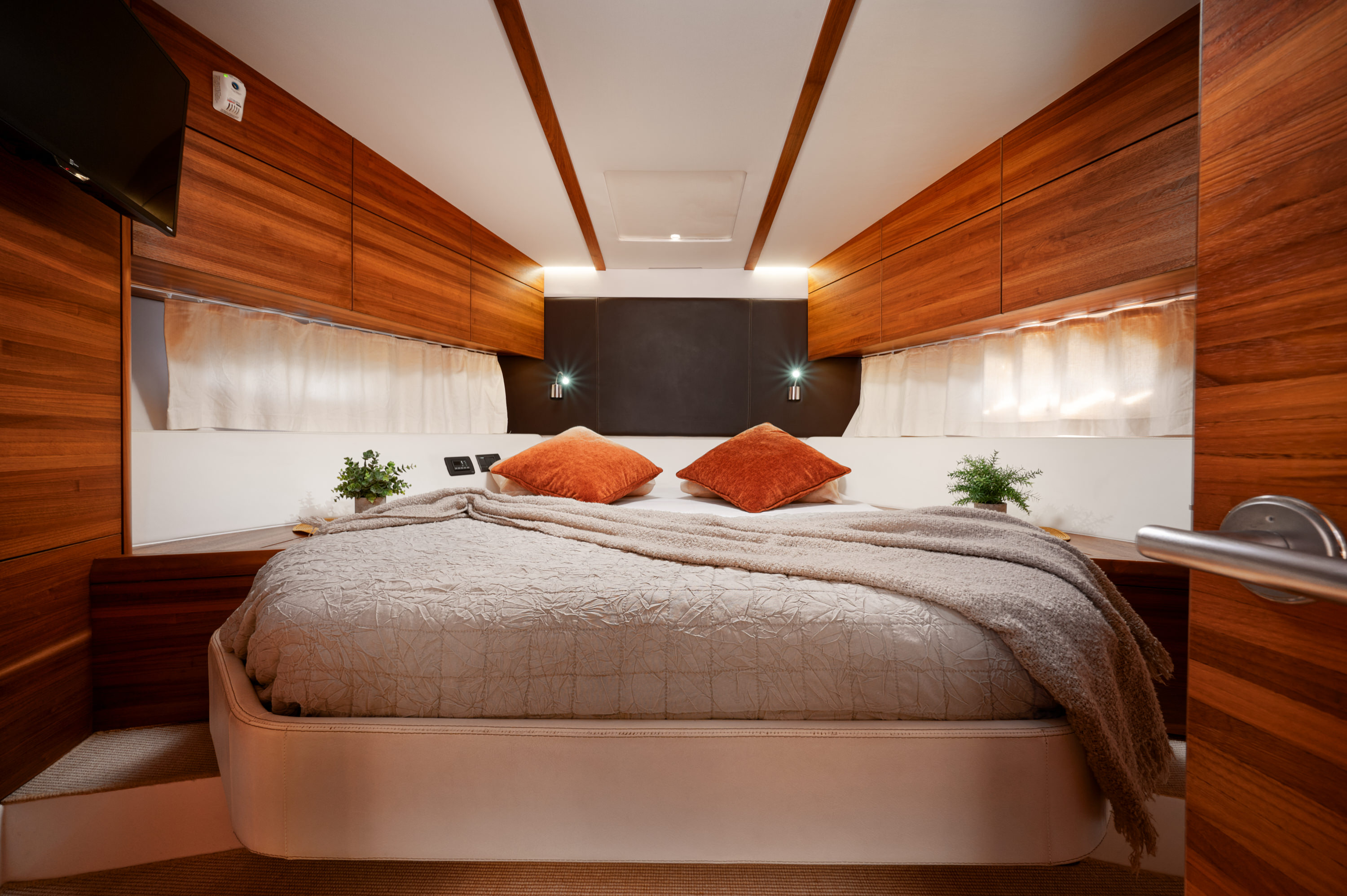 | Inside | Backofen, Gefrierschrank, Generator, Klimaanlage (ohne Landstrombedarf), Kühlbox, Kühlschrank, Mikrowelle, Pantryausstattung, Radio mit Bluetooth, Sound System, TV, WC (elektr.) |
