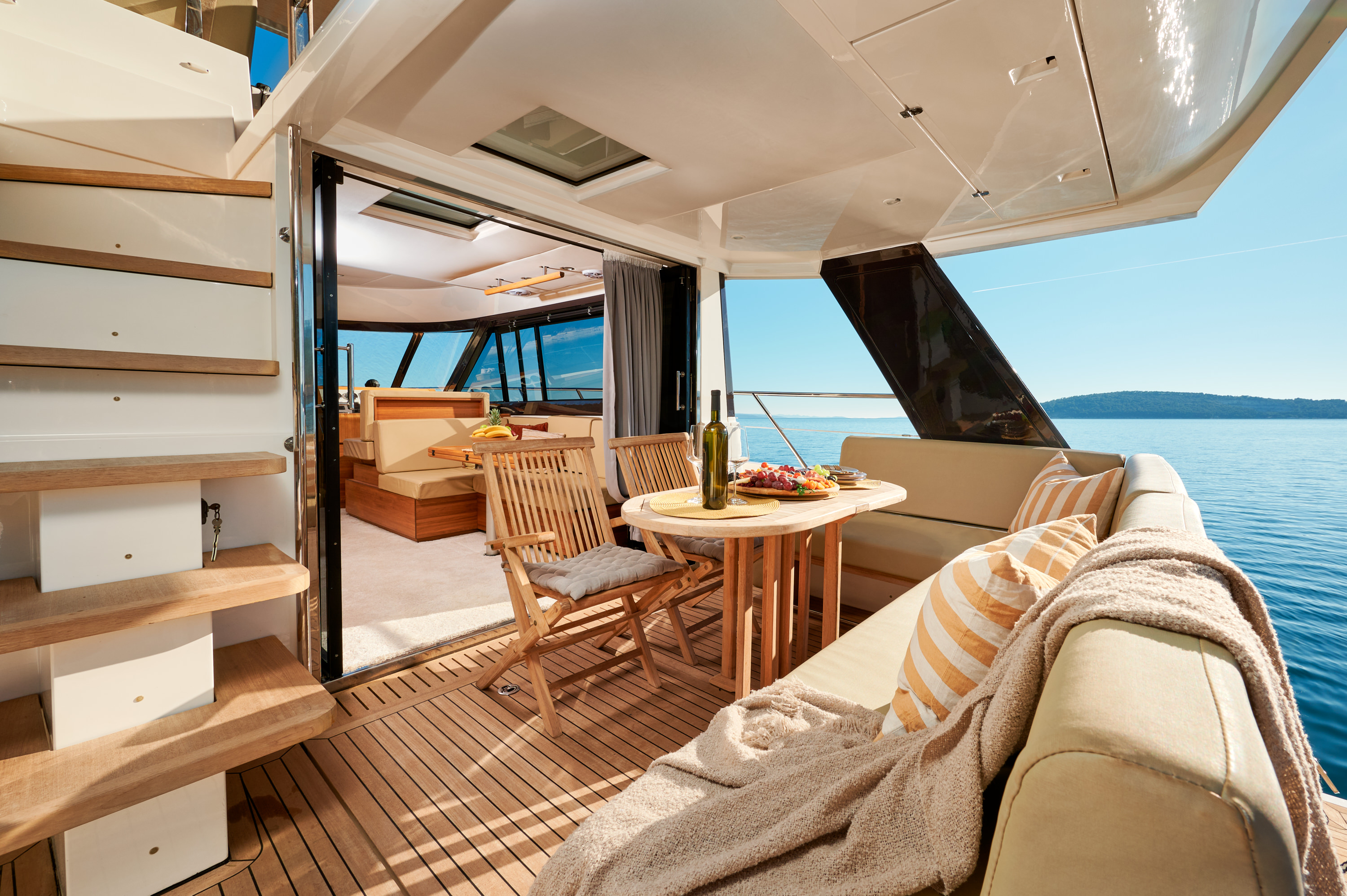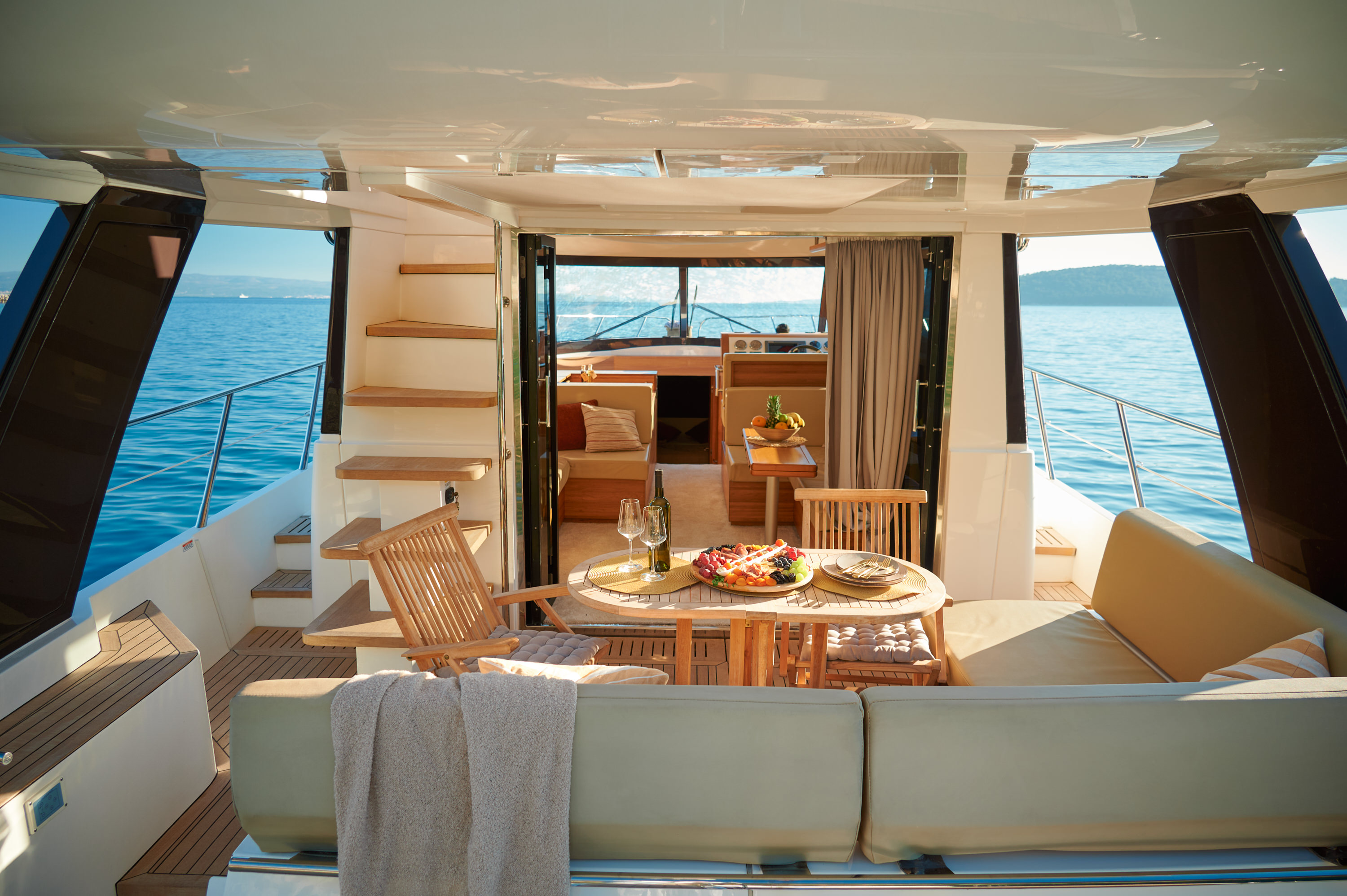 | Outside | Badeleiter, Badeplattform, Biminitop auf Flybridge, Gangway, Grill auf Flybridge, Spülbecken auf Flybridge |