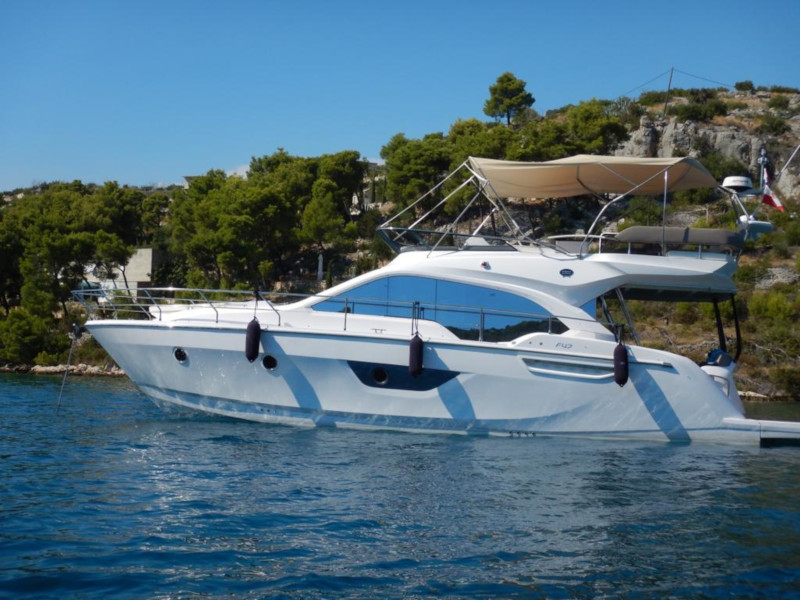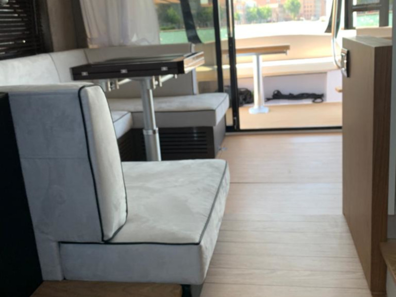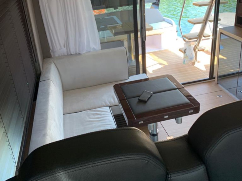 | Inside | Eiswürfelmaschine, Generator, Kaffeemaschine, Klimaanlage (ohne Landstrombedarf), Kühlschrank, Pantryausstattung, Radio, Salontisch absenkbar, TV, Watermaker |