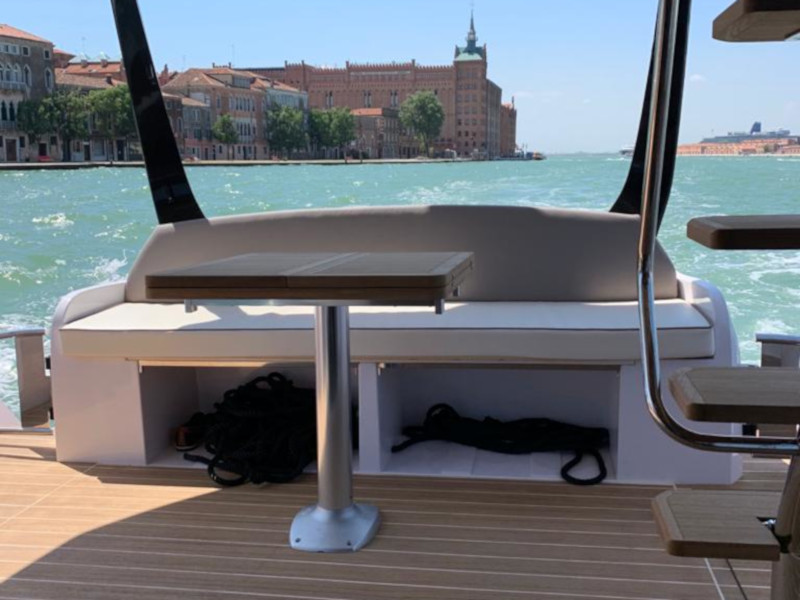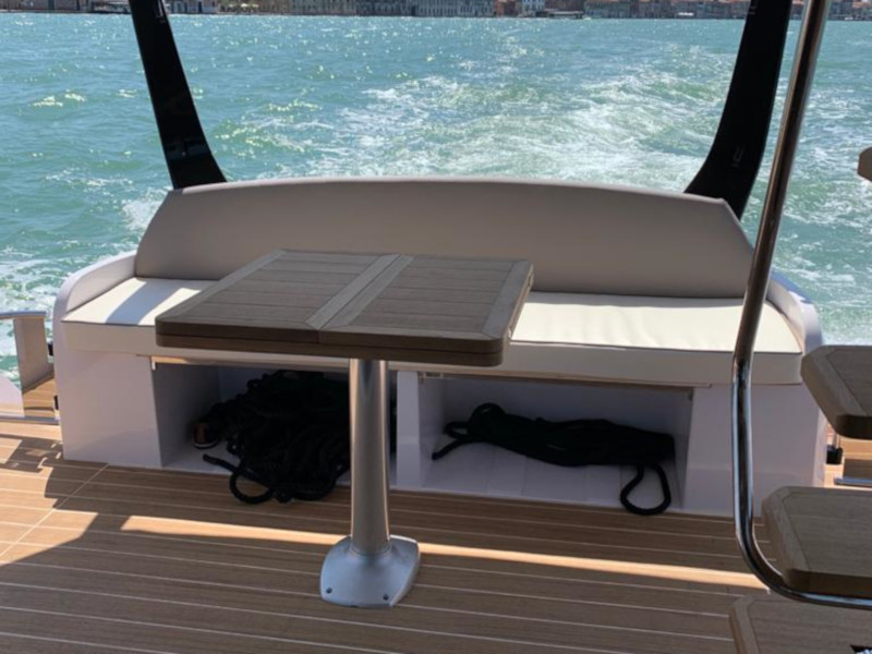 | Outside | Badeplattform (hydr.), Biminitop, Cockpitpolster, Gangway, Grill |