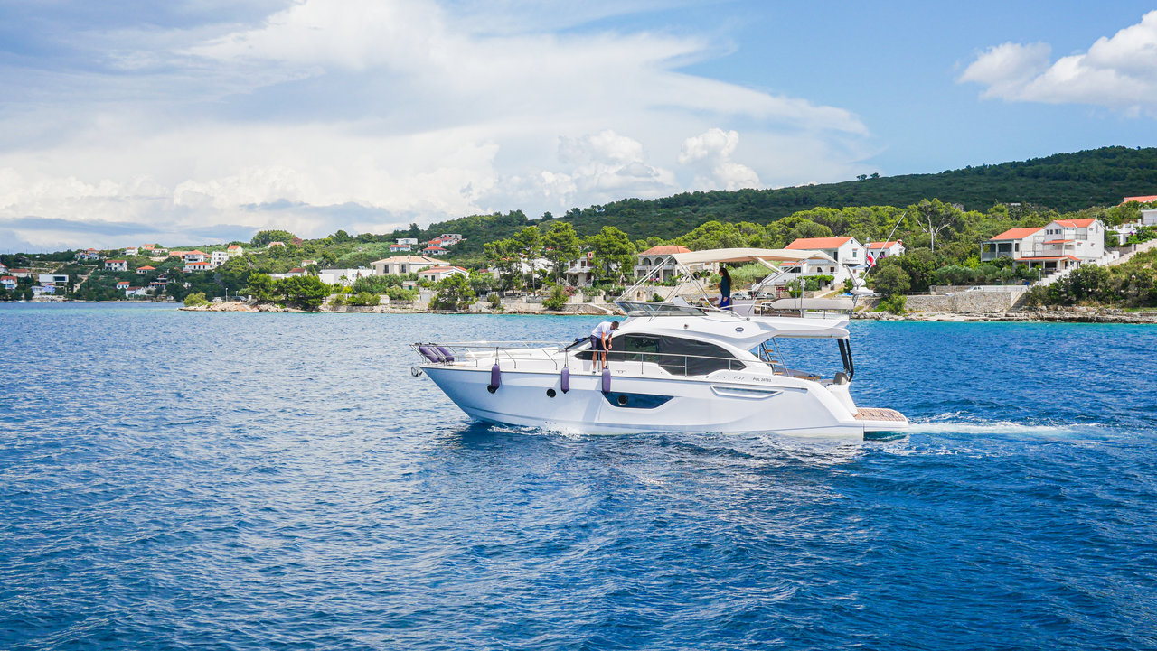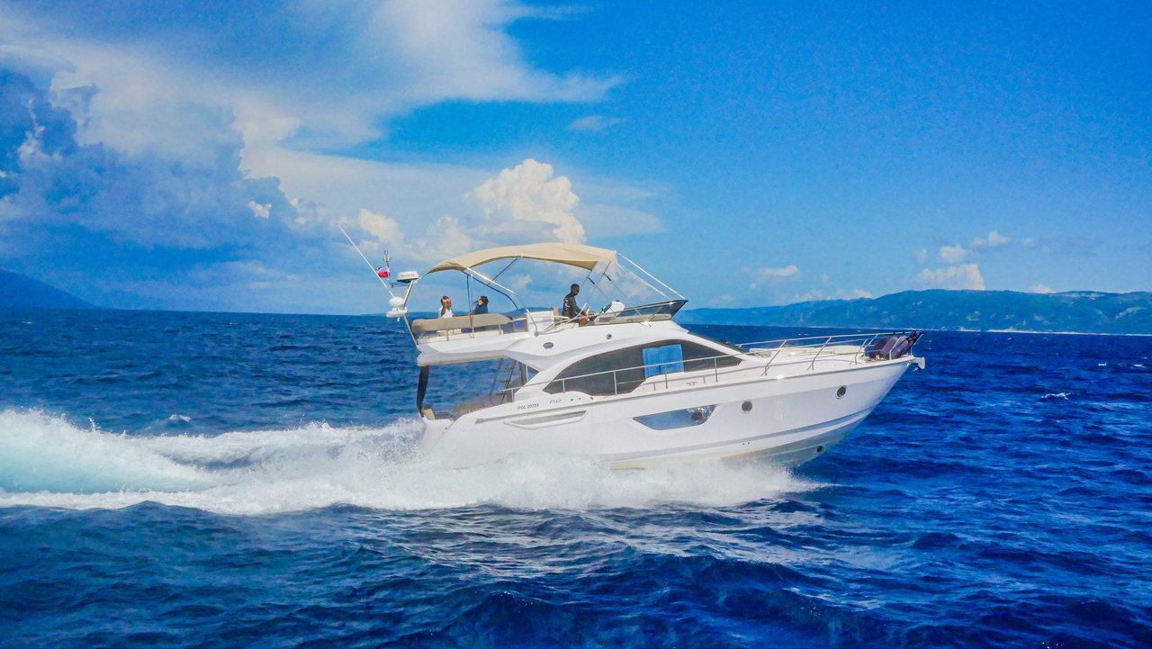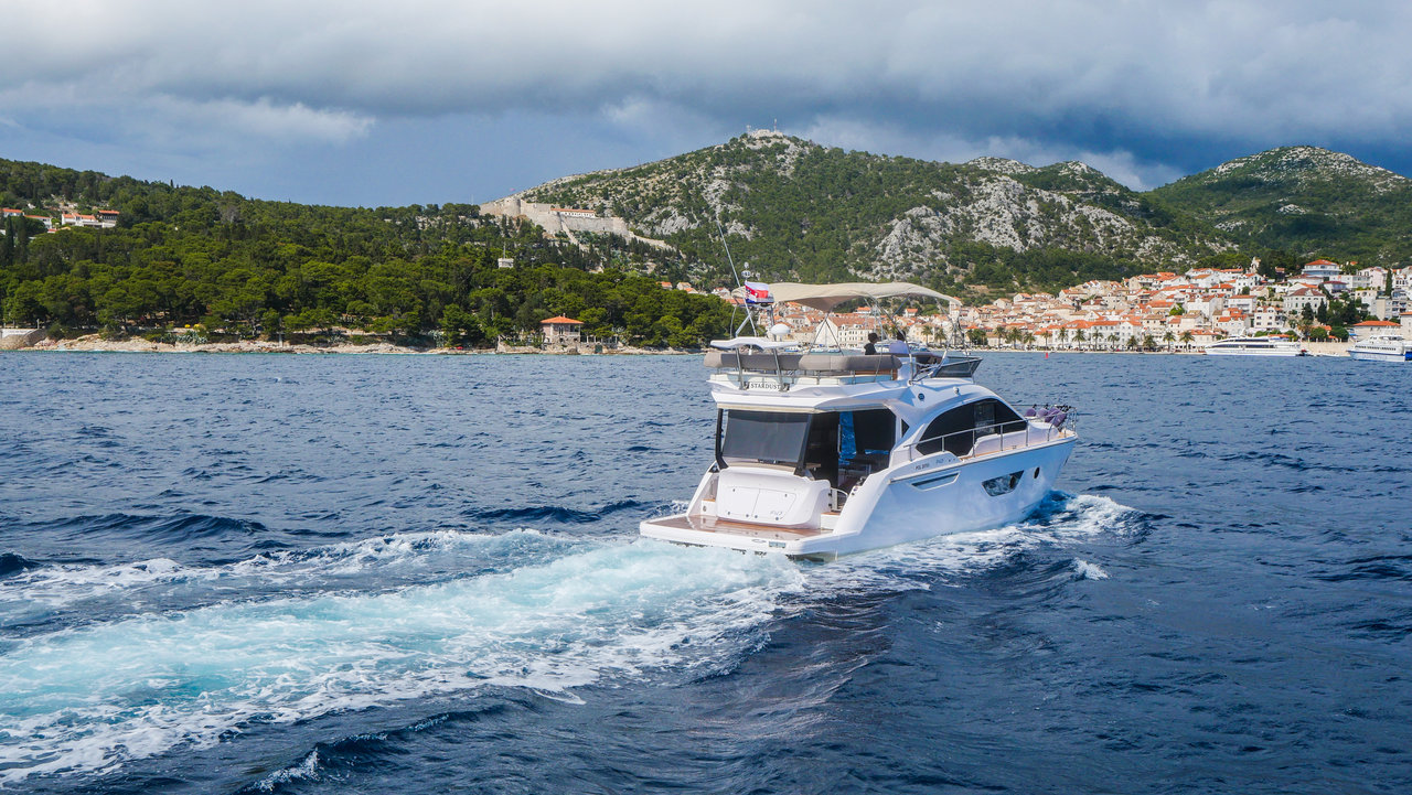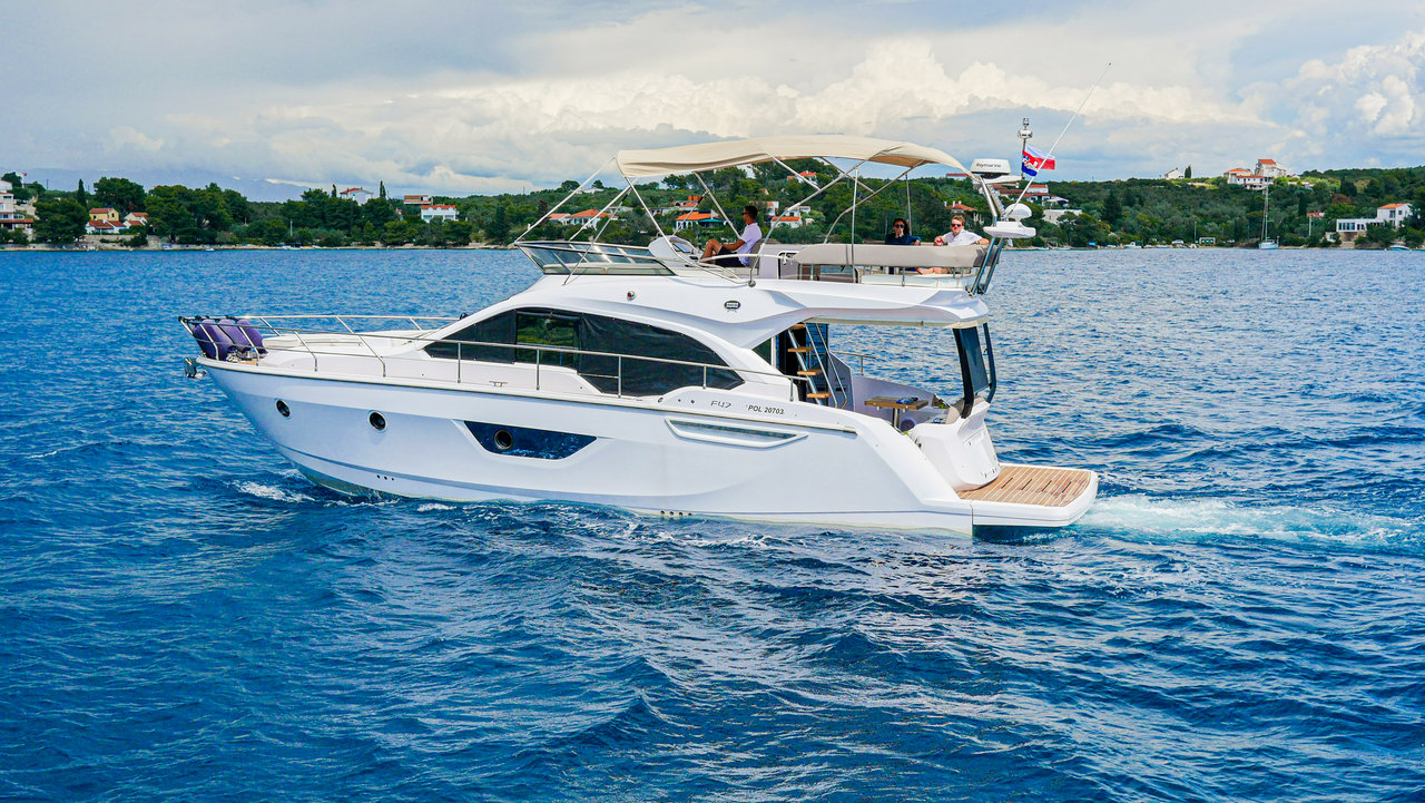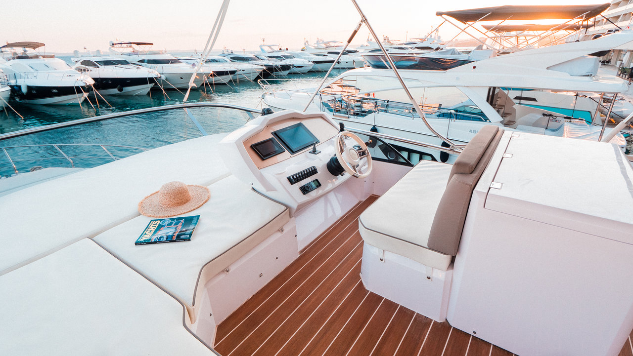 | Inside | Fäkalientank, FUSION Sound System, Gefrierschrank, Generator, Geschirrspüler, Klimaanlage (ohne Landstrombedarf), Kühlschrank, Pantryausstattung, Safe für Wertsachen, Spülbecken, TV, Waschmaschine, Watermaker |