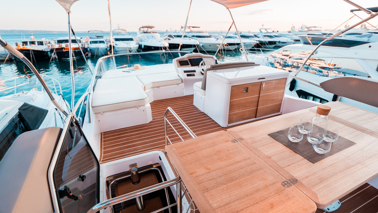 | Outside | Biminitop, Cockpitdusche, Cockpitlautsprecher, Fender, hydraul. Gangway, Kuchenbude, Teak auf Flybridge, Unterwasserbeleuchtung |