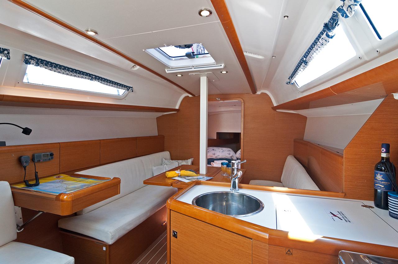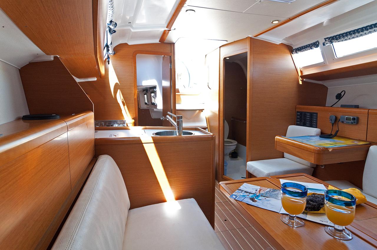 | Outside | Biminitop, Cockpitdusche, Cockpitlautsprecher, Cockpitpolster, Cockpittisch, elektr. Ankerwinsch, Sprayhood |
