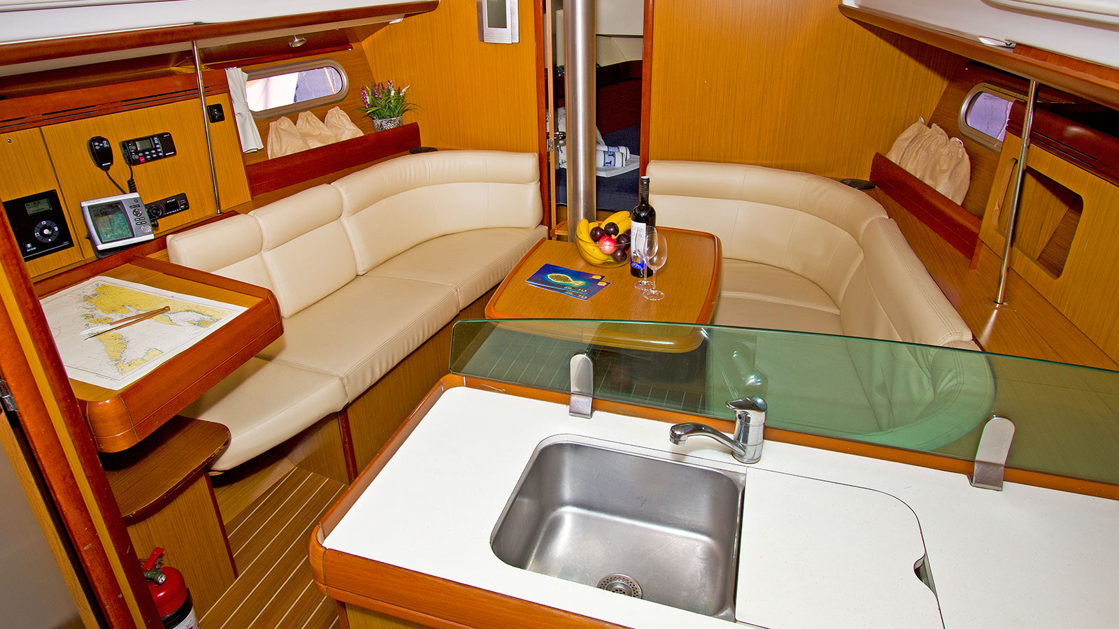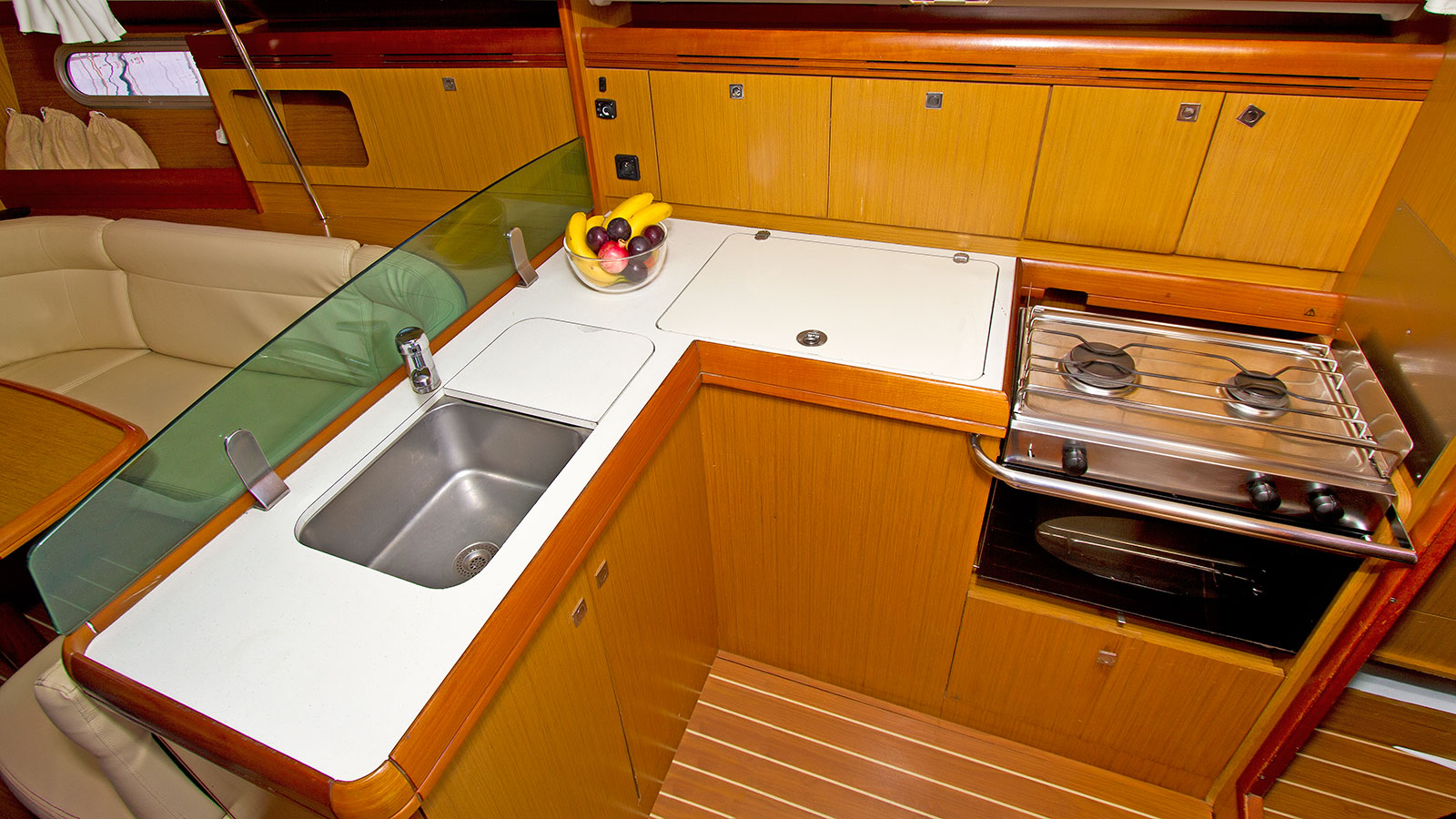 | Inside | Backofen, Borduhr, CD-Player, Dusche, Gasherd, Heizung, Kleiderbügel, Kühlschrank, Landstromkabel, Luftpumpe für Beiboot, Pantryausstattung, Radio mit CD und MP3, Trichter, Warmwasser, Wasserkocher, WC-Pumpe |