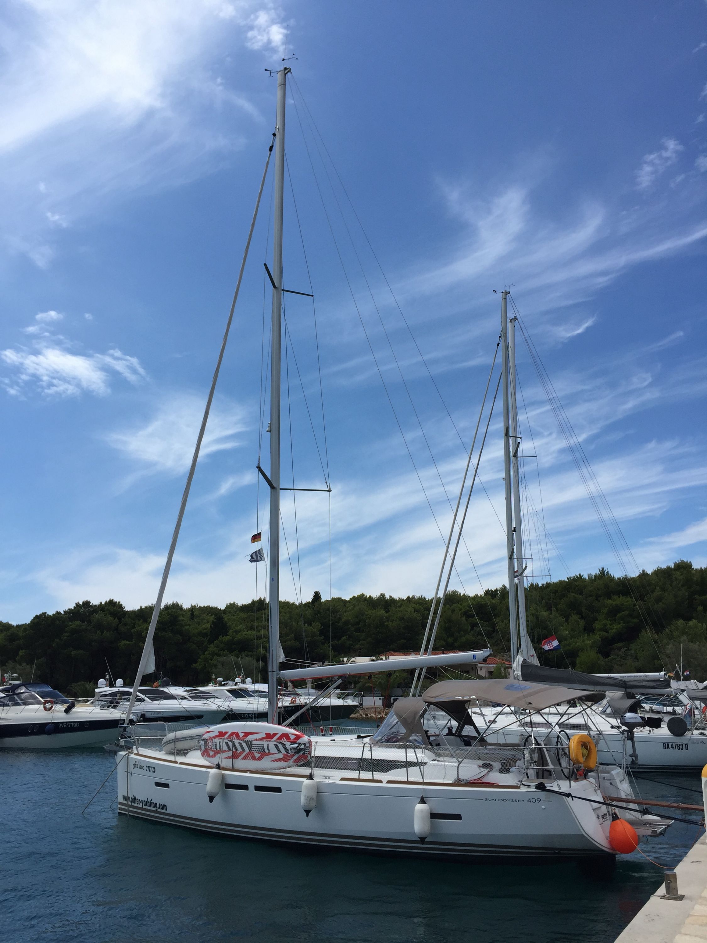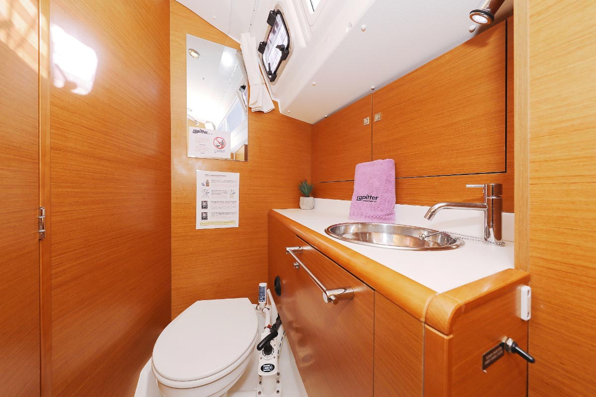 | Navigation | Barometer, Fernglas mit Peilkompass, GPS mit Kartenplotter im Cockpit, Hafenhandbücher, Navigationsbesteck, Seekarten, Tridata (Log, Echolot, Windm.) |