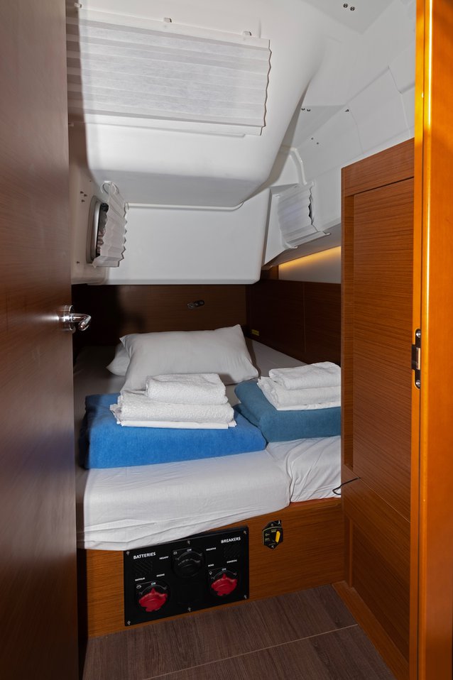 | Inside | 12V/220V-Steckdosen, Backofen, Bluetooth Player, Gasherd, Kühlschrank, Ladegerät, MP3-Player, Salontisch absenkbar, Ventilatoren in Salon und Kabinen, Warmwasser |