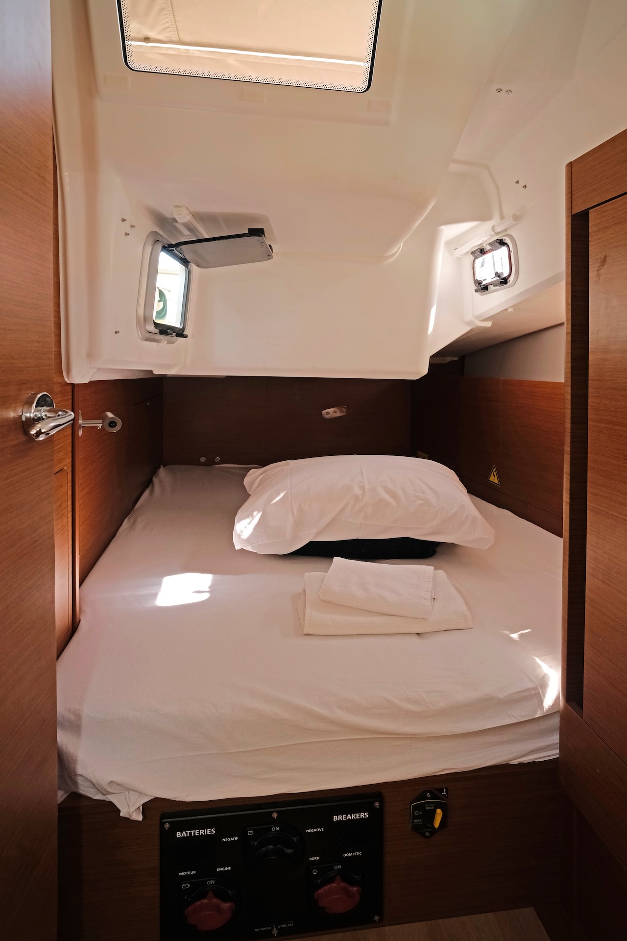 | Safety | Autopilot, Bordapotheke, Bordwerkzeug, Bugstrahlruder, Feuerlöscher, Handbilgepumpe, Nebelhorn, Notpinne, Notsignale, Radarreflektor, Taschenlampe, UKW-Funk, Zweitanker |