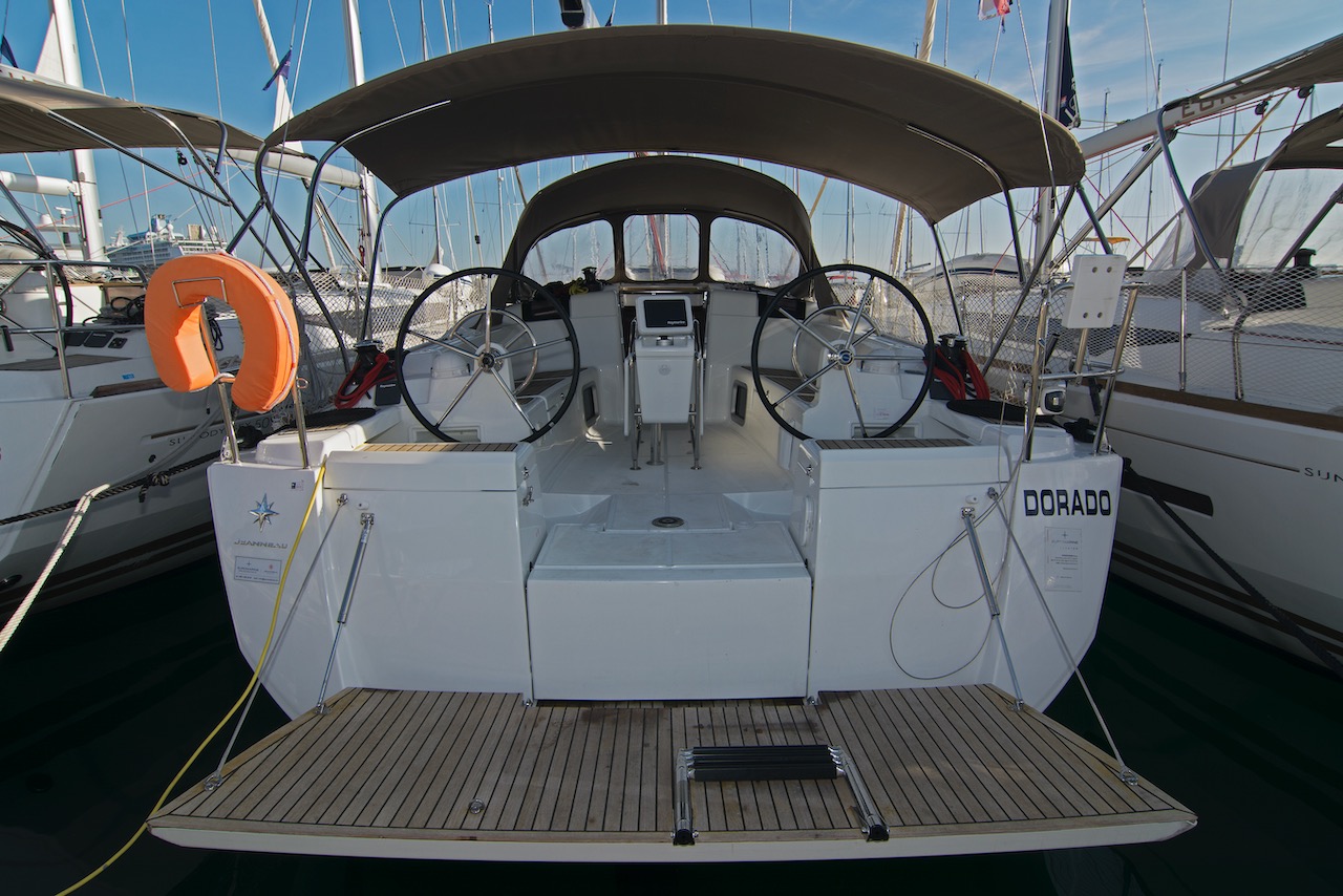 | Outside | 220 V-Landanschluss, Anker mit Kette, Biminitop, Cockpitdusche, Cockpitpolster, Cockpittisch, elektr. Ankerwinsch, Fender, Festmacherleinen, Teak im Cockpit, Wantenschneider, Windex |