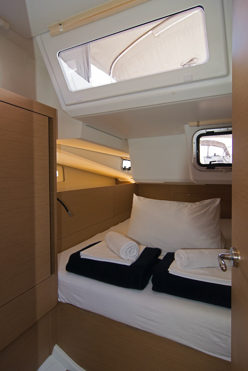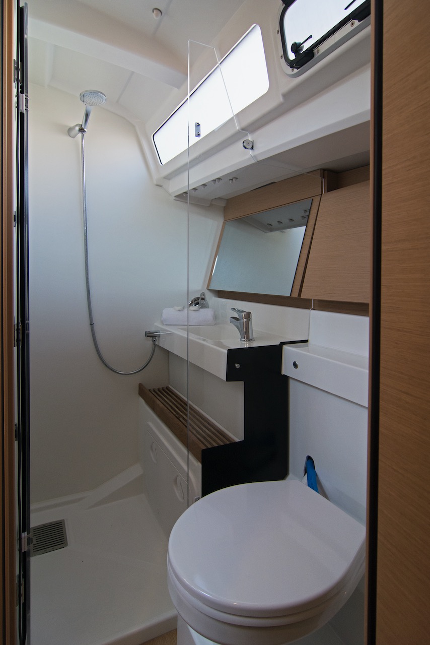 | Outside | 220 V-Landanschluss, Anker mit Kette, Badeplattform, Biminitop, Cockpitdusche, Cockpitpolster, Cockpittisch, elektr. Ankerwinsch, Fender, Festmacherleinen, Teak im Cockpit, Wantenschneider, Windex |