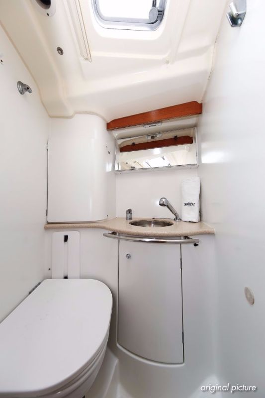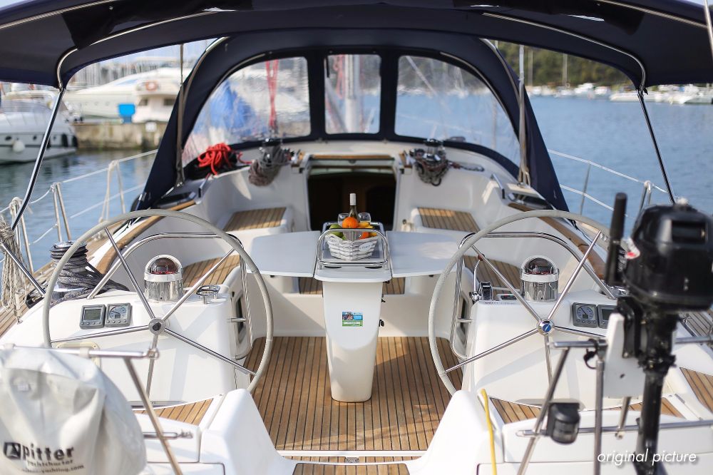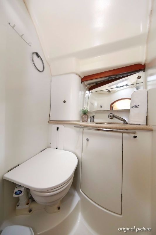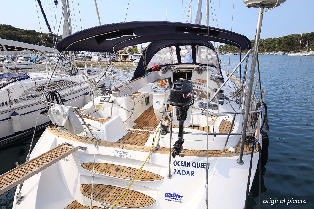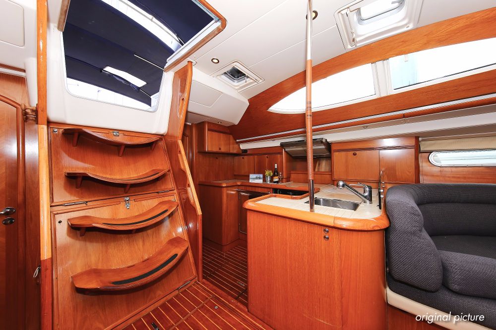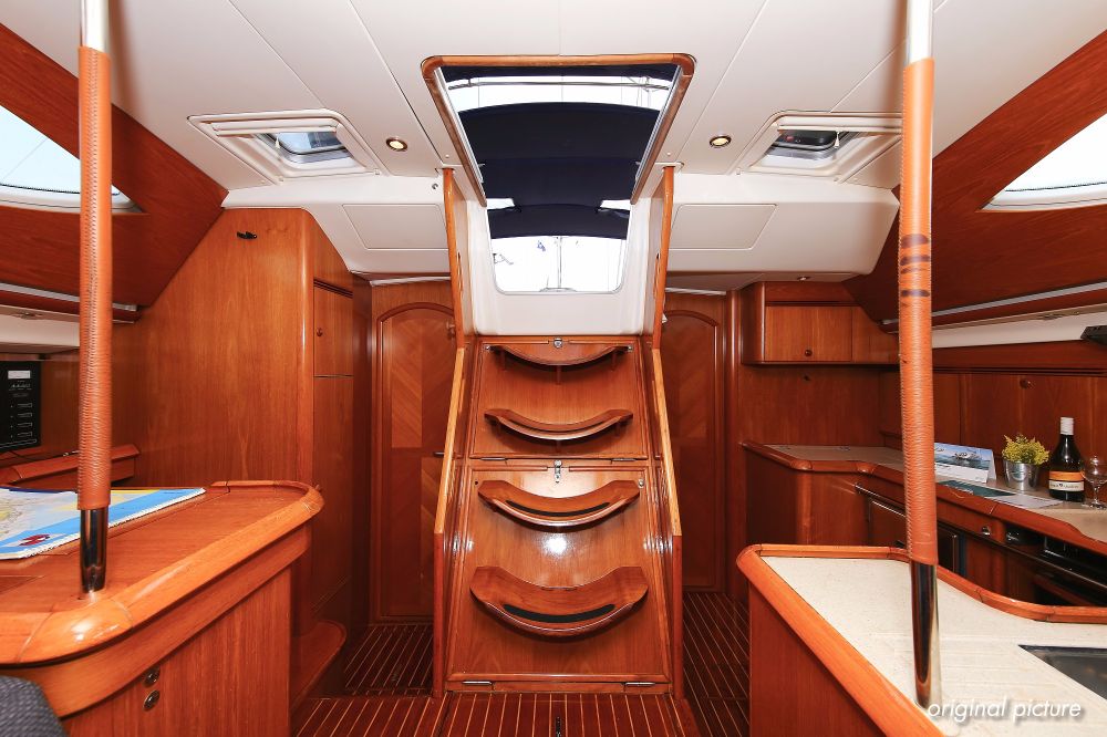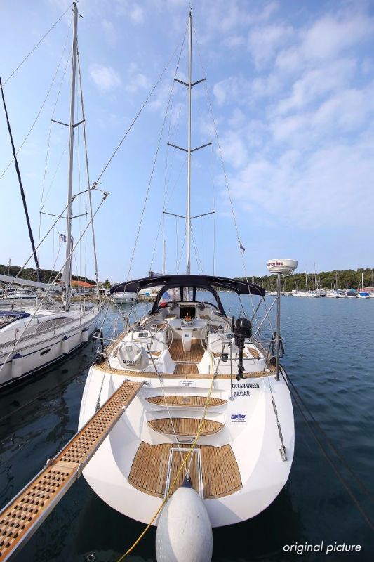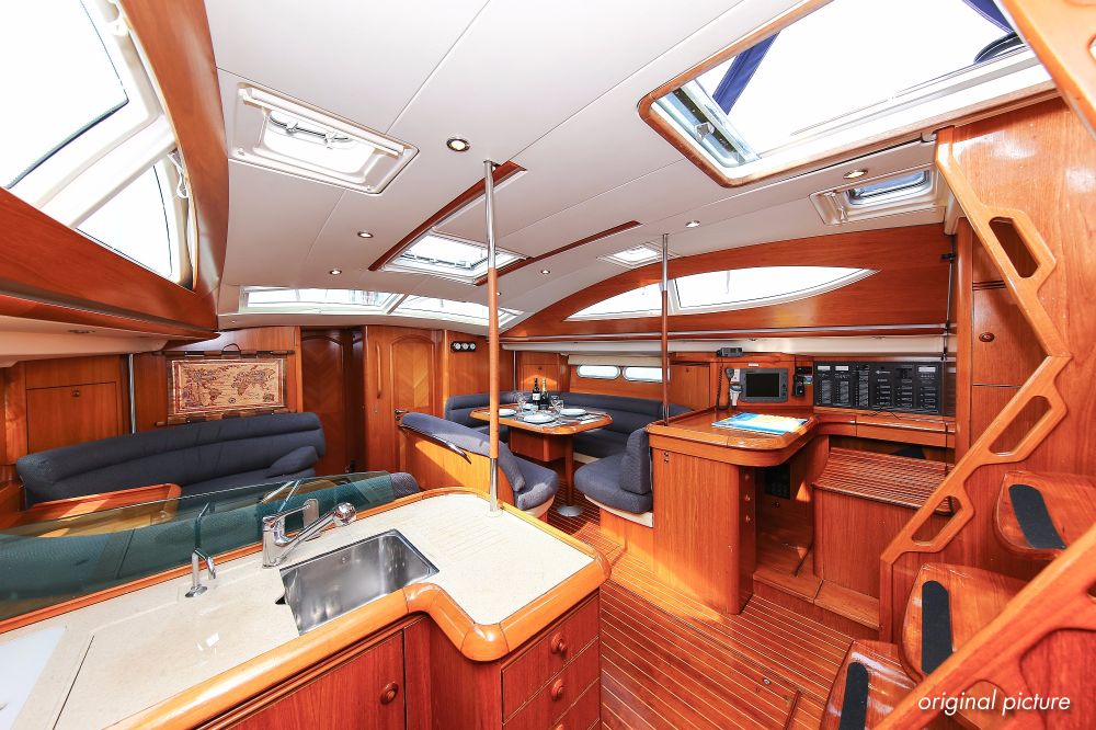 | Outside | 220 V-Landanschluss, Anker mit Kette, Ankerwinsch, Biminitop, Bootshaken, Cockpitdusche, Cockpitlautsprecher, Cockpitpolster, Cockpittisch, Dieselkanister , elektr. Ankerwinsch, Faltpropeller, Fender, Festmacherleinen, Gangway, Kugelfender, Kunststoff-Eimer (Pütz), Sprayhood, Teak im Cockpit, Teakdeck, Wantenschneider, Wasserkanister , Wasserschlauch, Windex |