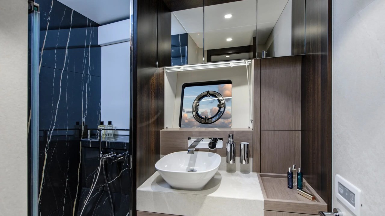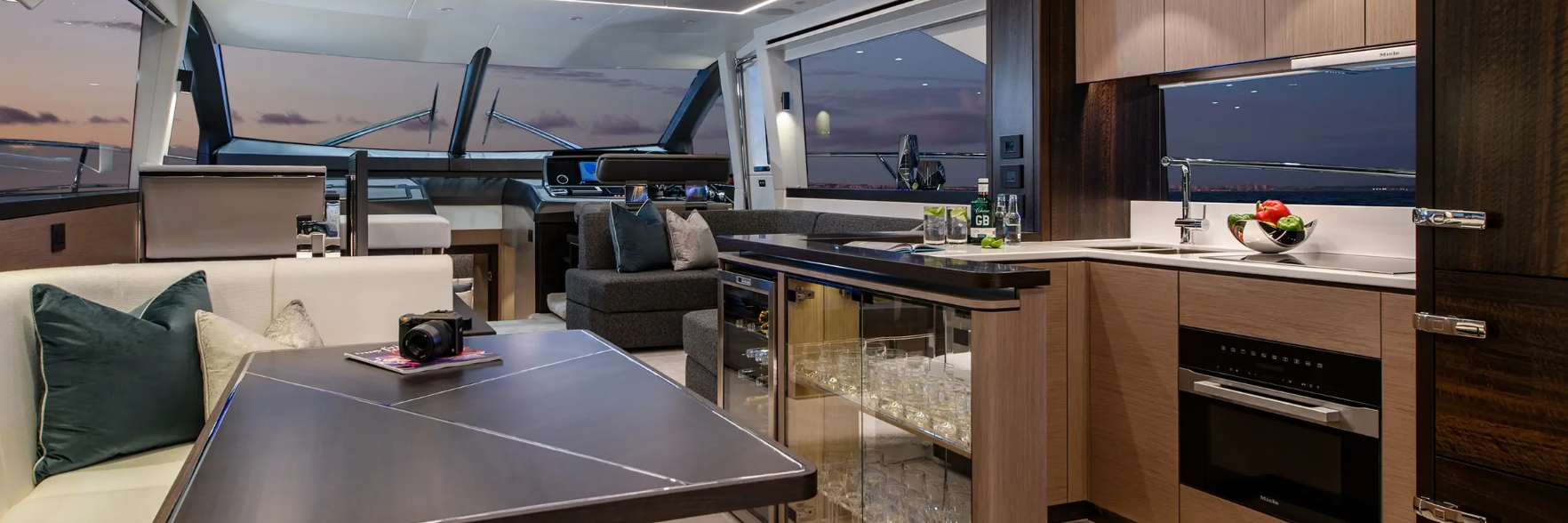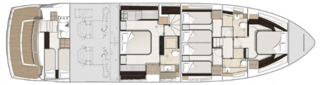 | Inside | Eiswürfelmaschine, Generator, Klimaanlage (ohne Landstrombedarf), Playstation, Safe für Wertsachen, Smart-TV, Watermaker, Weinkühlschrank |