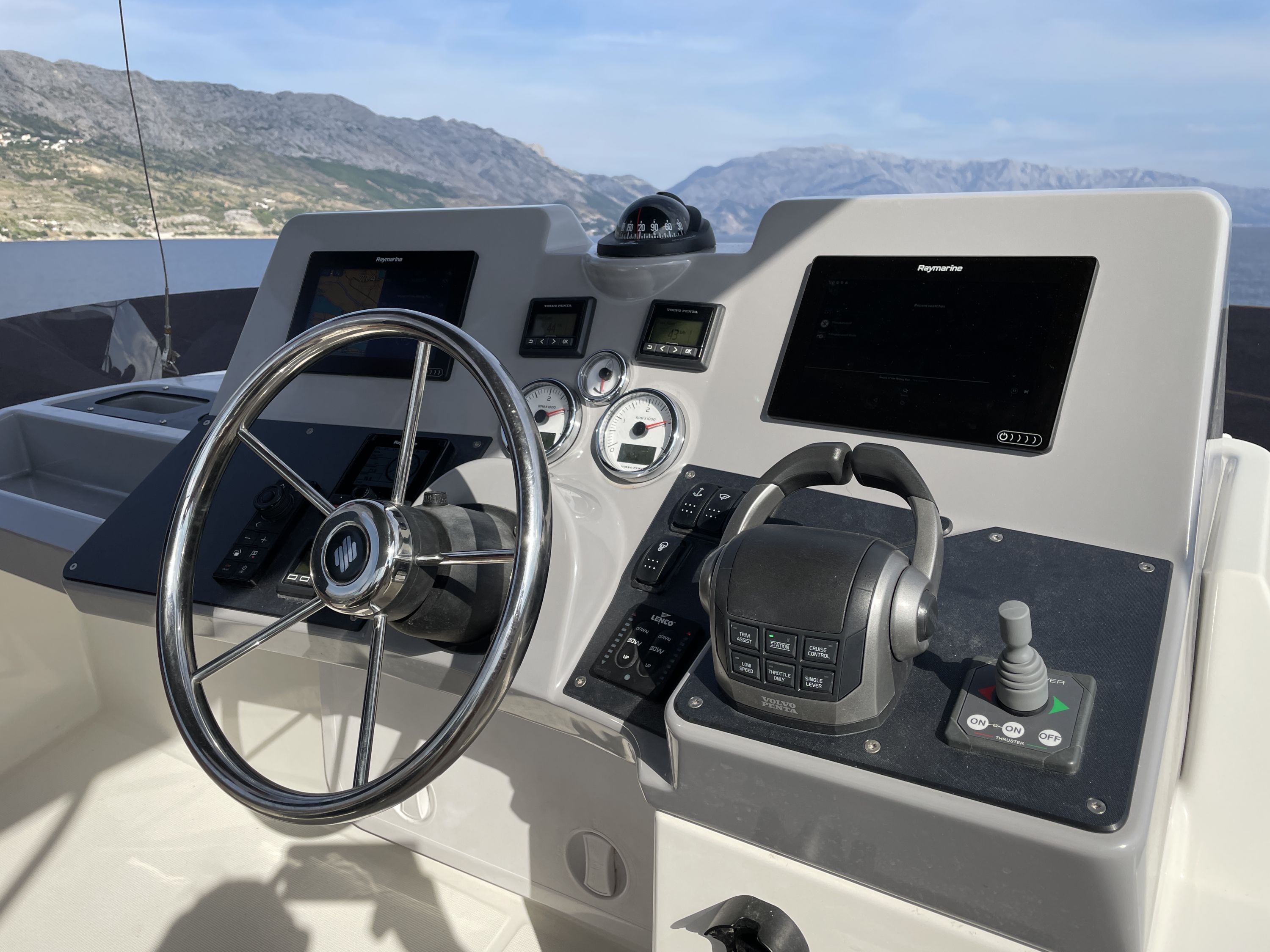 | Outside | 12 V-Anschluss, 220 V-Landanschluss, Badeplattform, Biminitop, Cockpitdusche, Cockpitlautsprecher, Cockpitpolster, Deckpolster, elektr. Ankerwinsch |