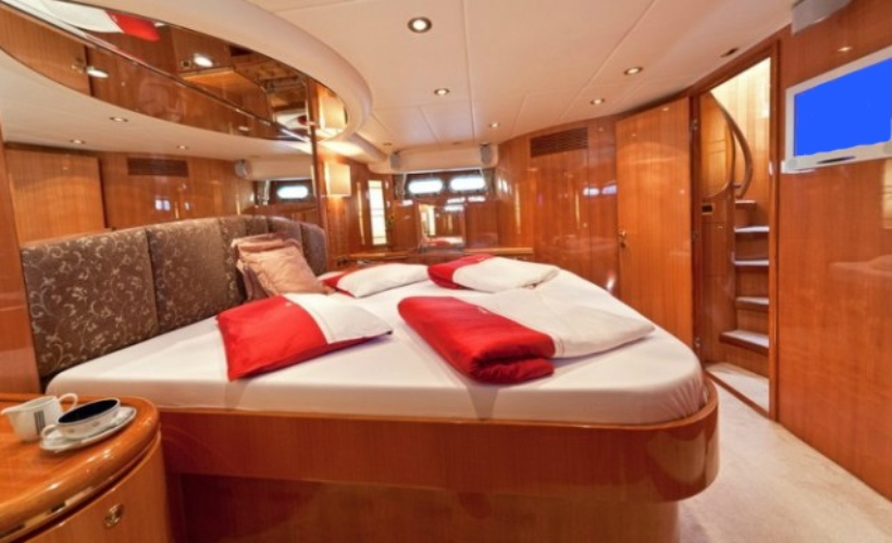 | Inside | Backofen, Eiswürfelmaschine, Generator, Geschirr, Heizung, Herd mit Ceranfeld, Klimaanlage (ohne Landstrombedarf), Kühlschrank, Ladegerät, Radio mit CD, Spüle mit 2 Becken, TV + DVD, Warmwasser |