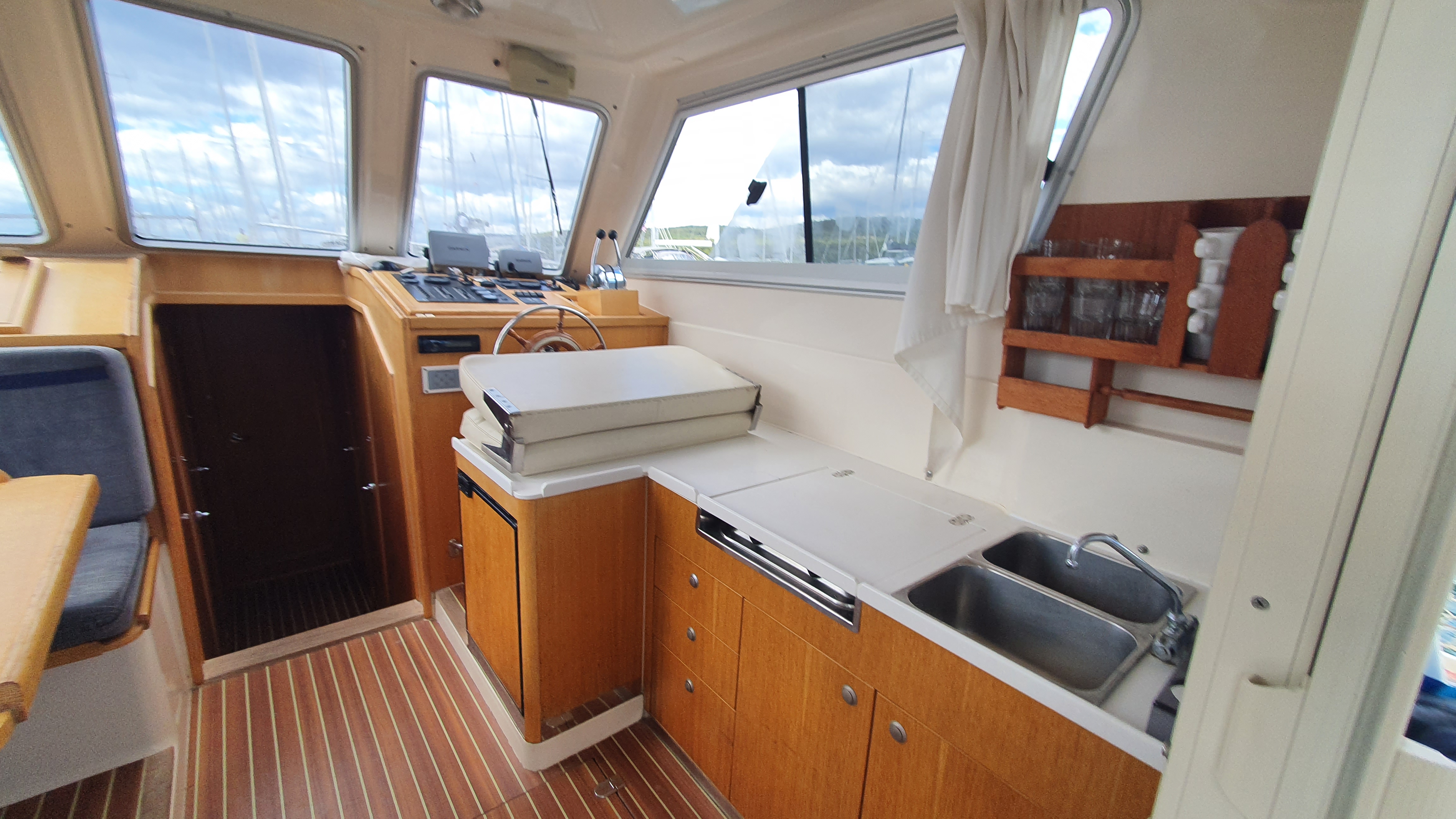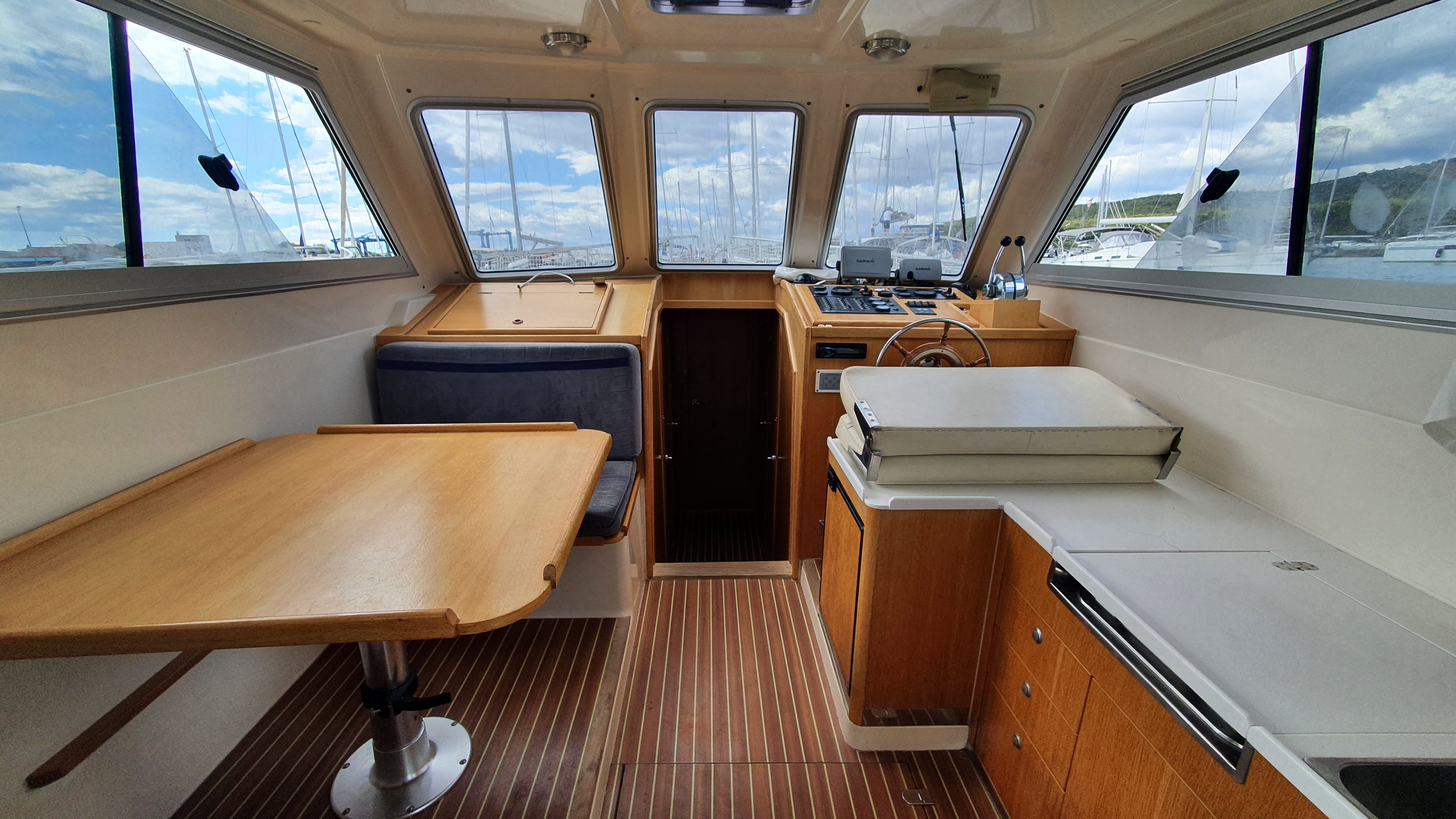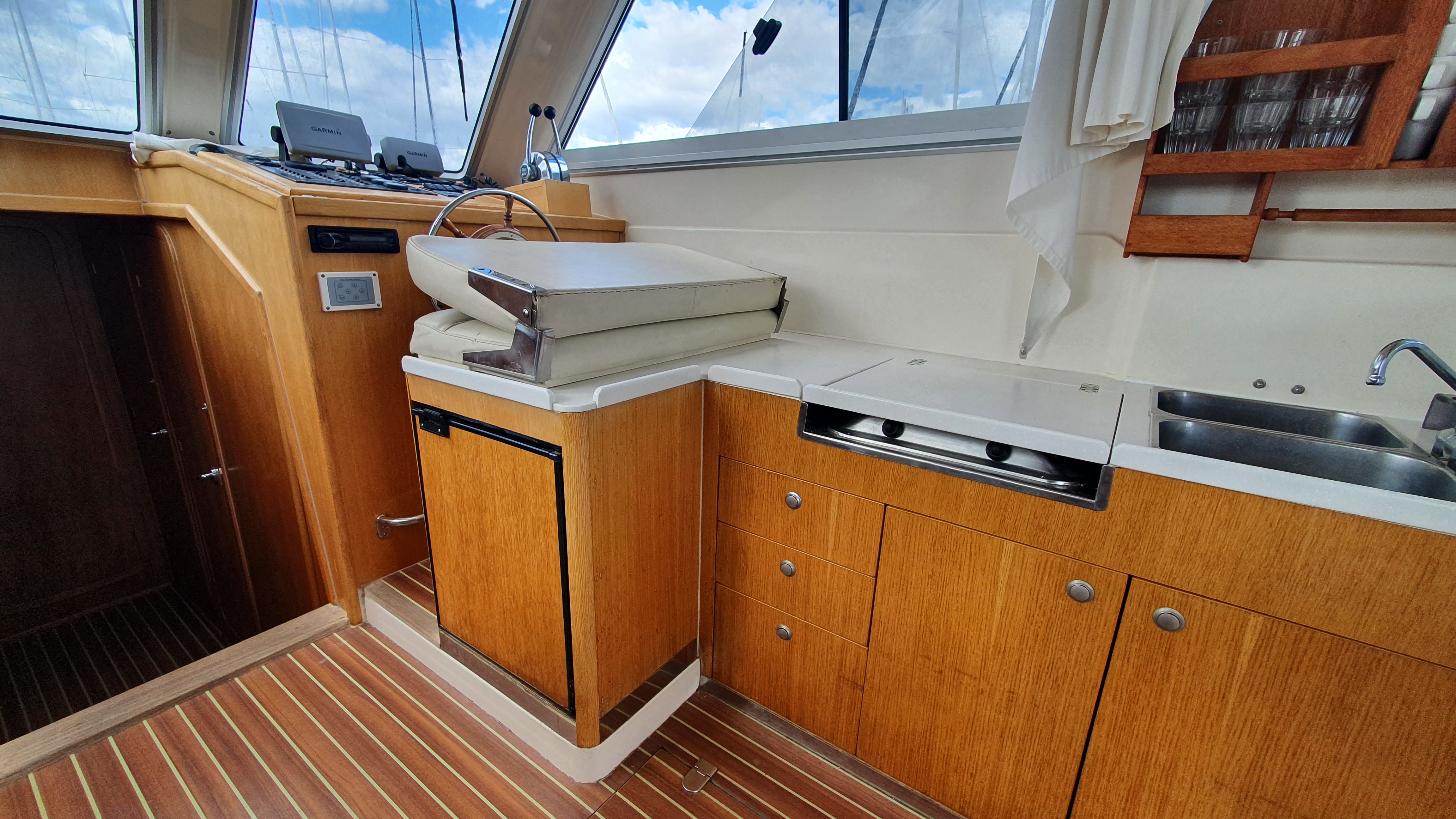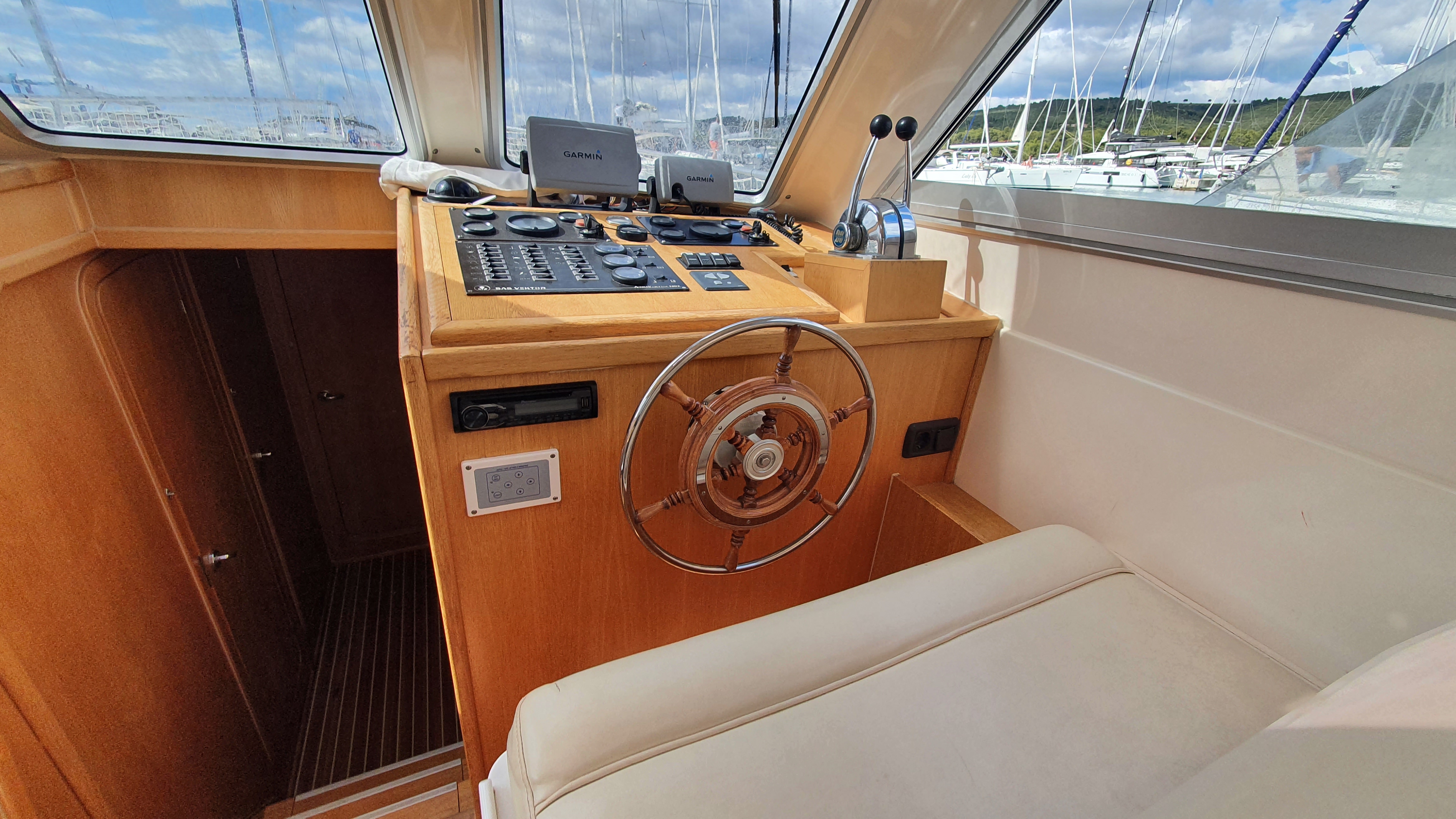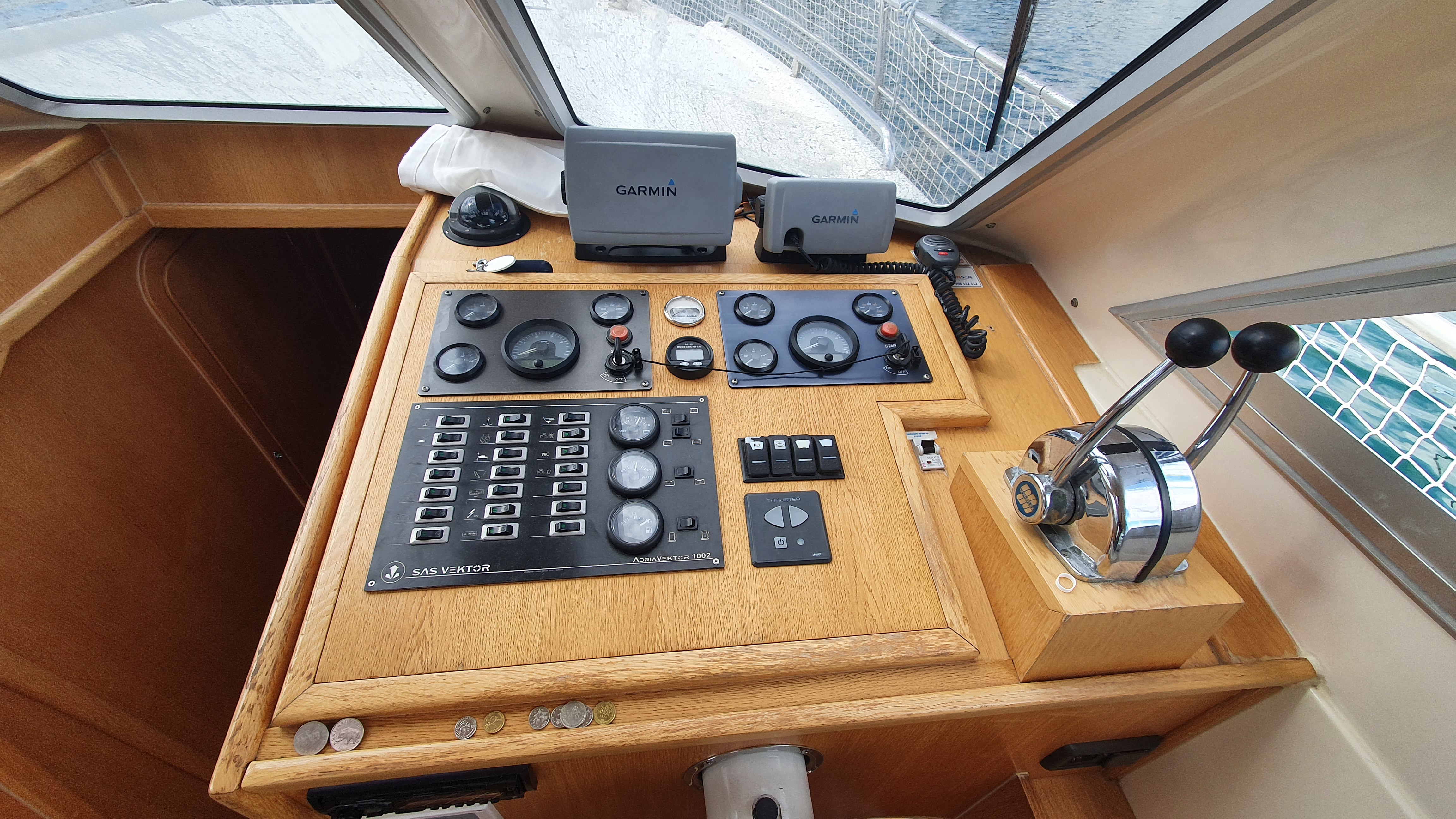 | Navigation | Barometer, Echolot, Fernglas, Fischfinder, GPS mit Kartenplotter im Salon, Hafenhandbücher, Handpeilkompass, Kompass, Navigationsbesteck, Seekarten, Sumlog |