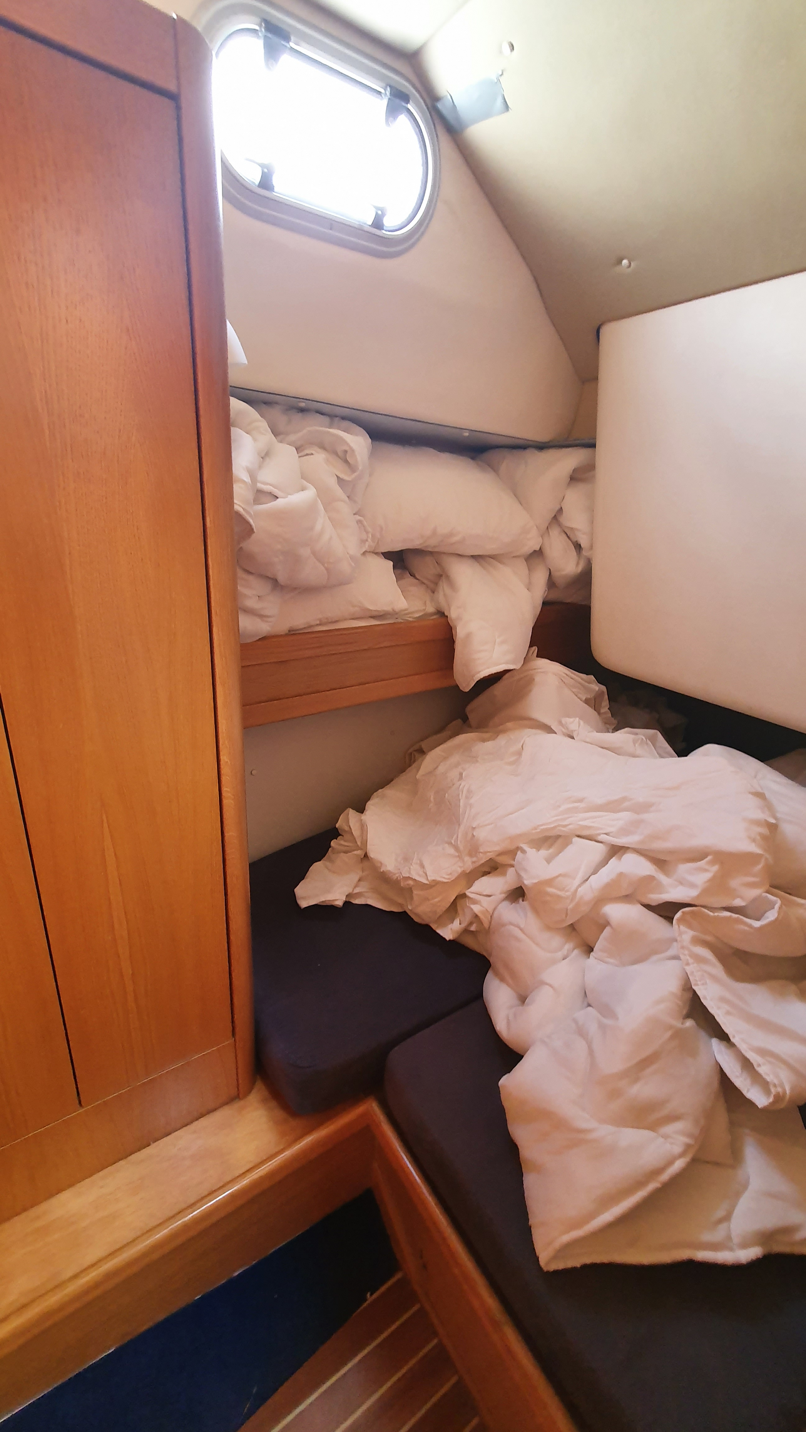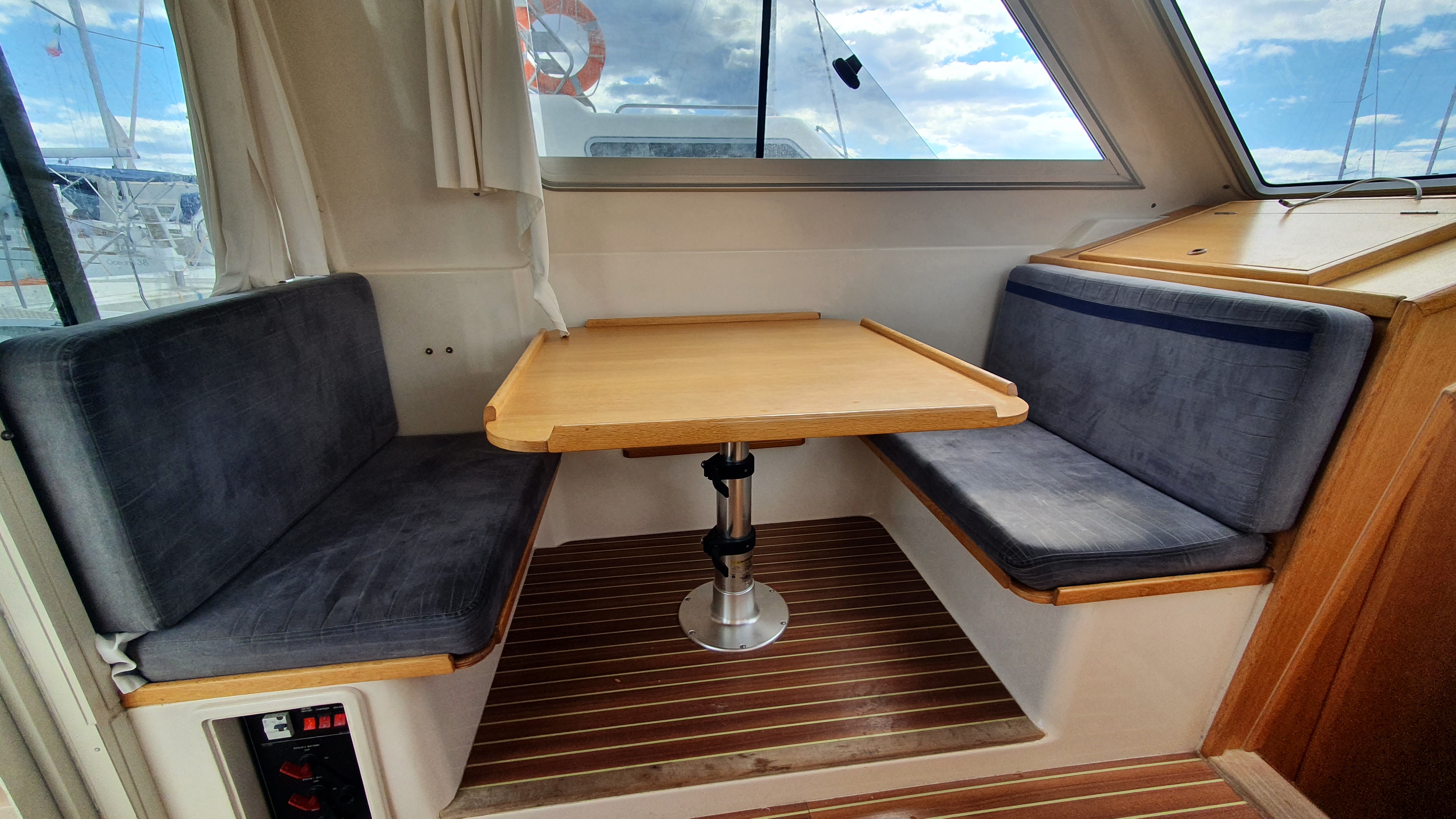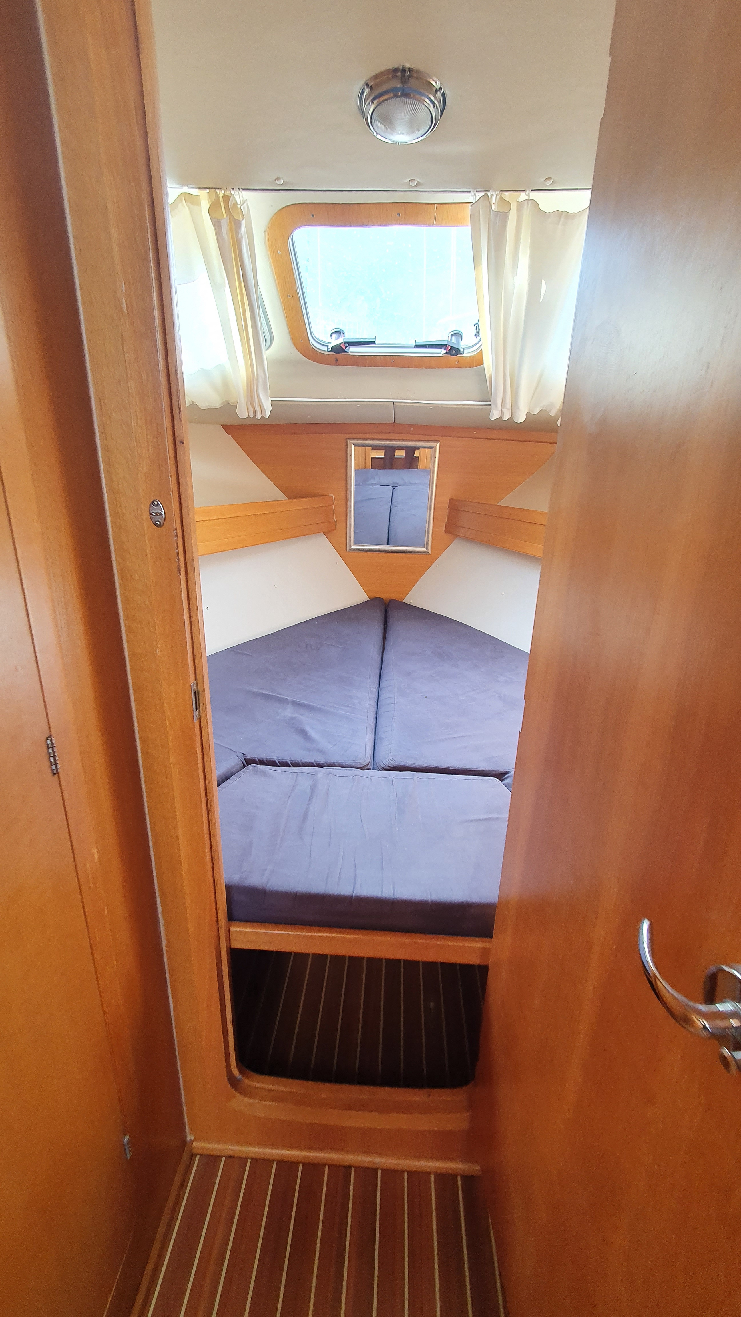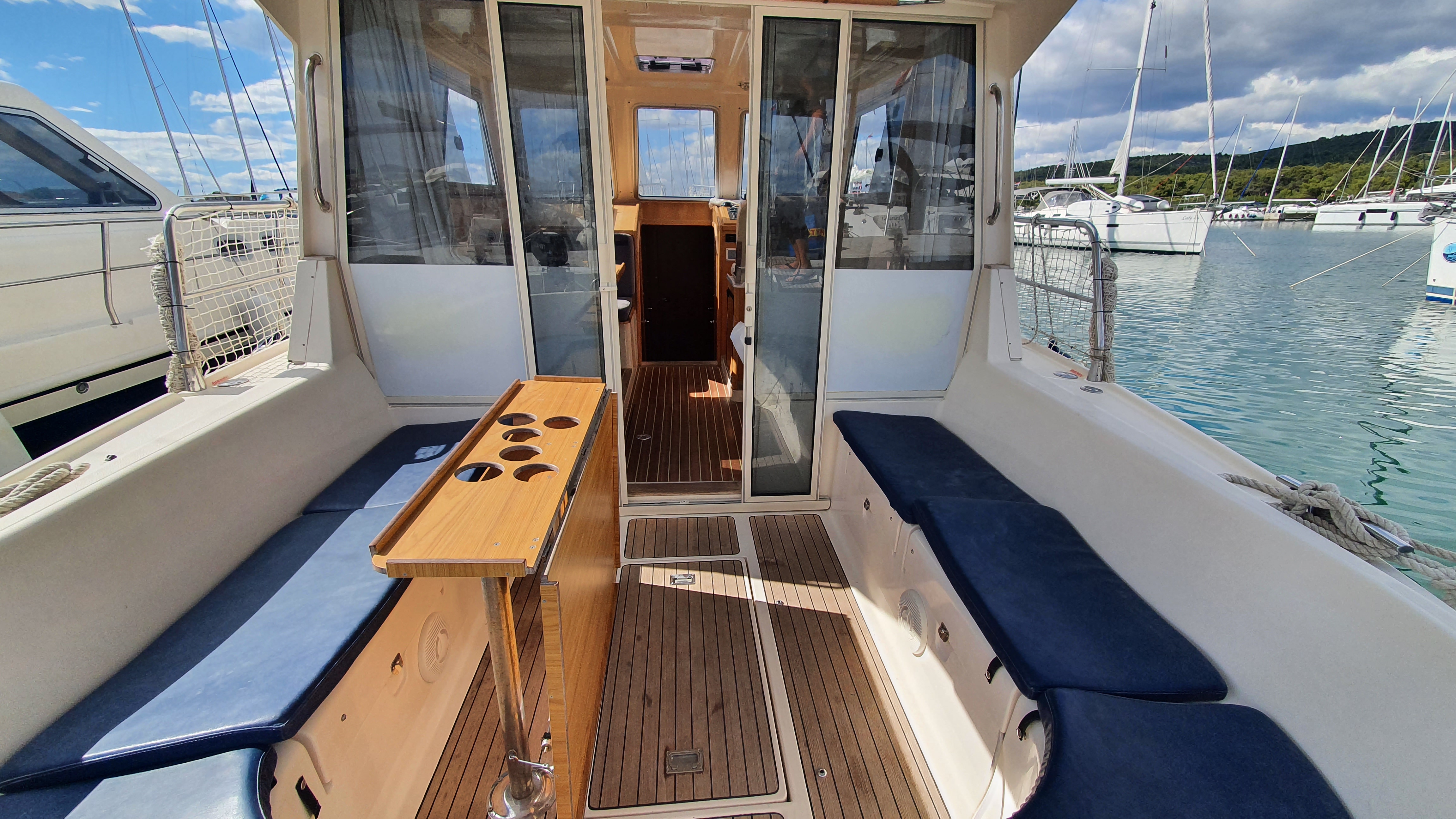 | Outside | Badeplattform, Bootshaken, Buganker, Cockpitdusche, Cockpitpolster, Cockpittisch, Deckbürste, Dieselkanister , Eimer mit Seil, elektr. Ankerwinsch, Fender, Festmacherleinen, Solaranlage, Wasserschlauch |