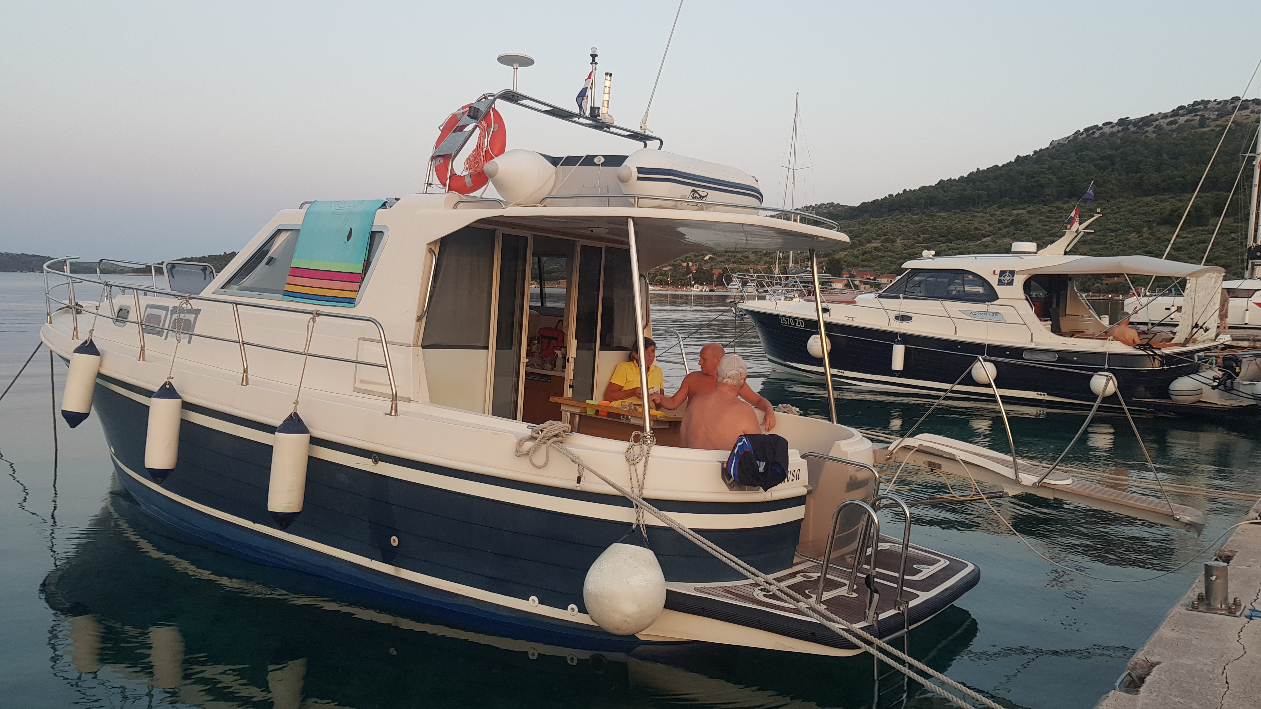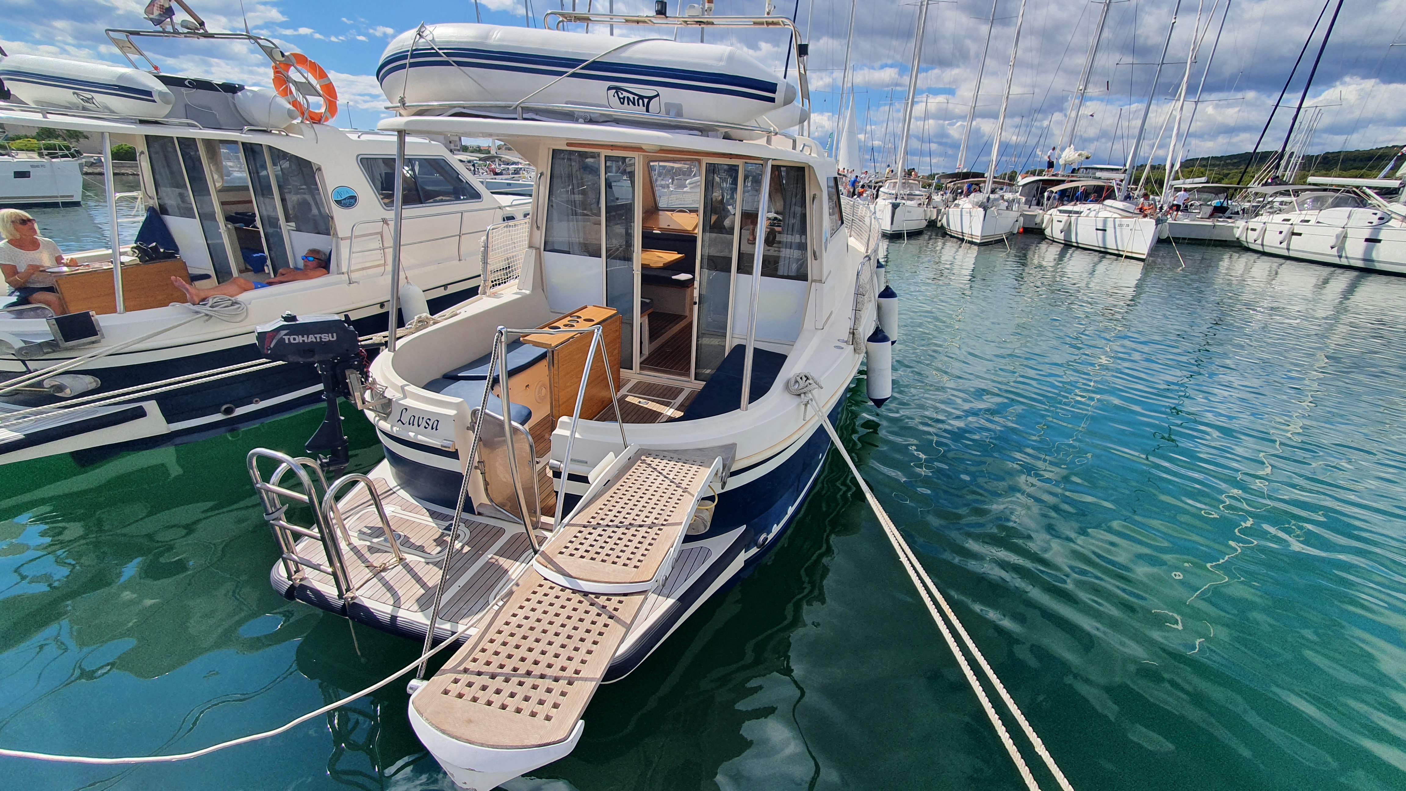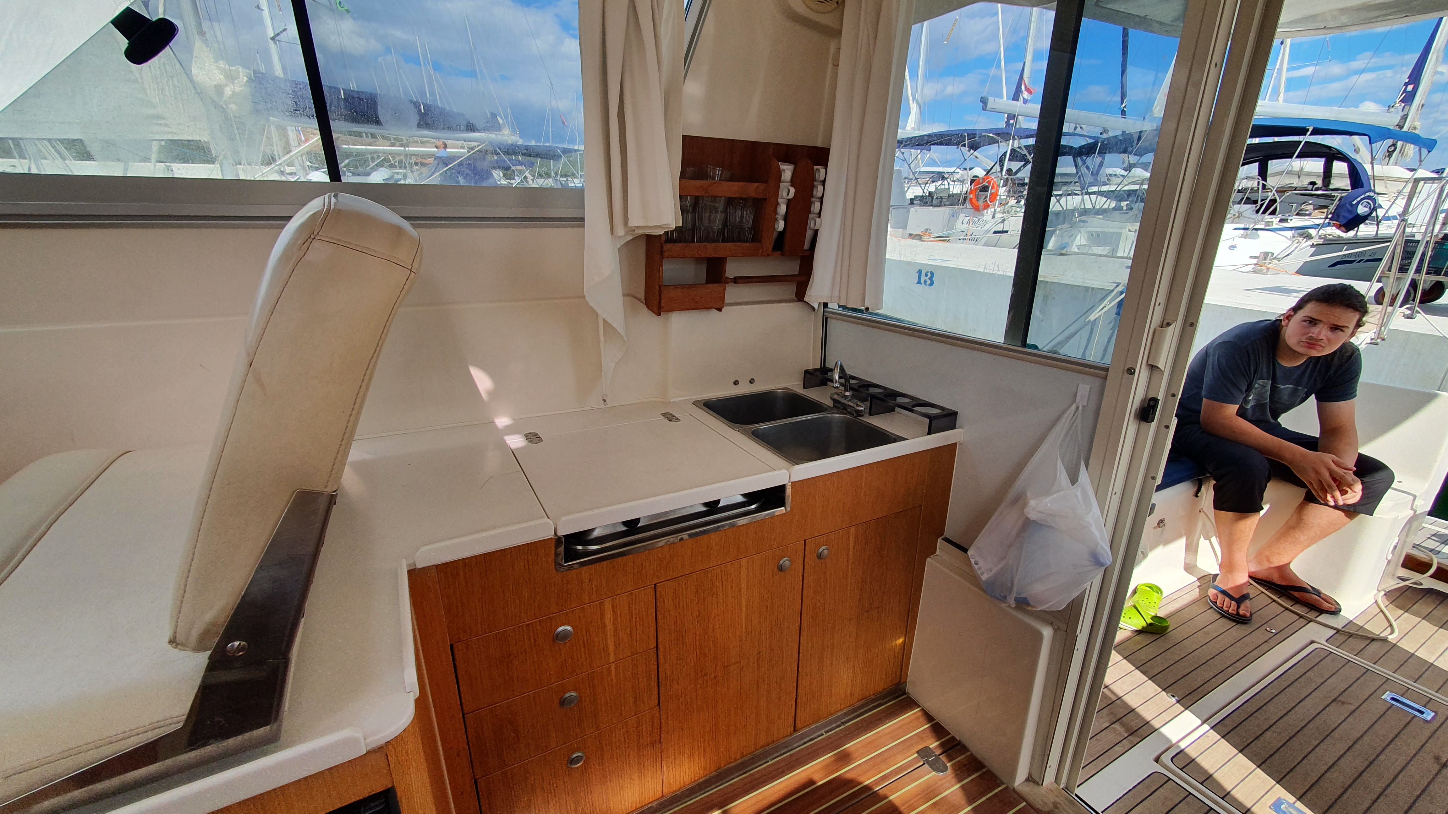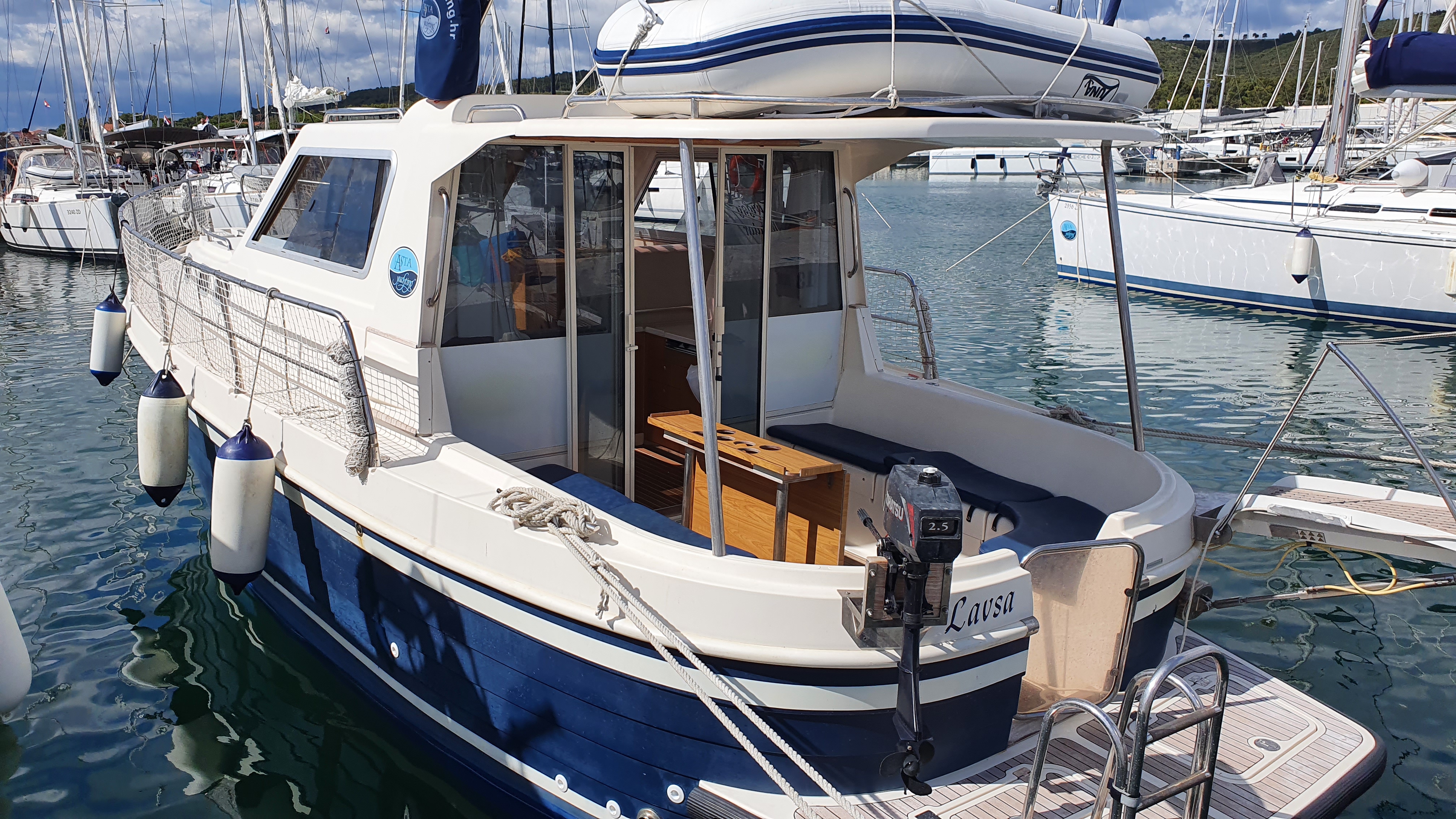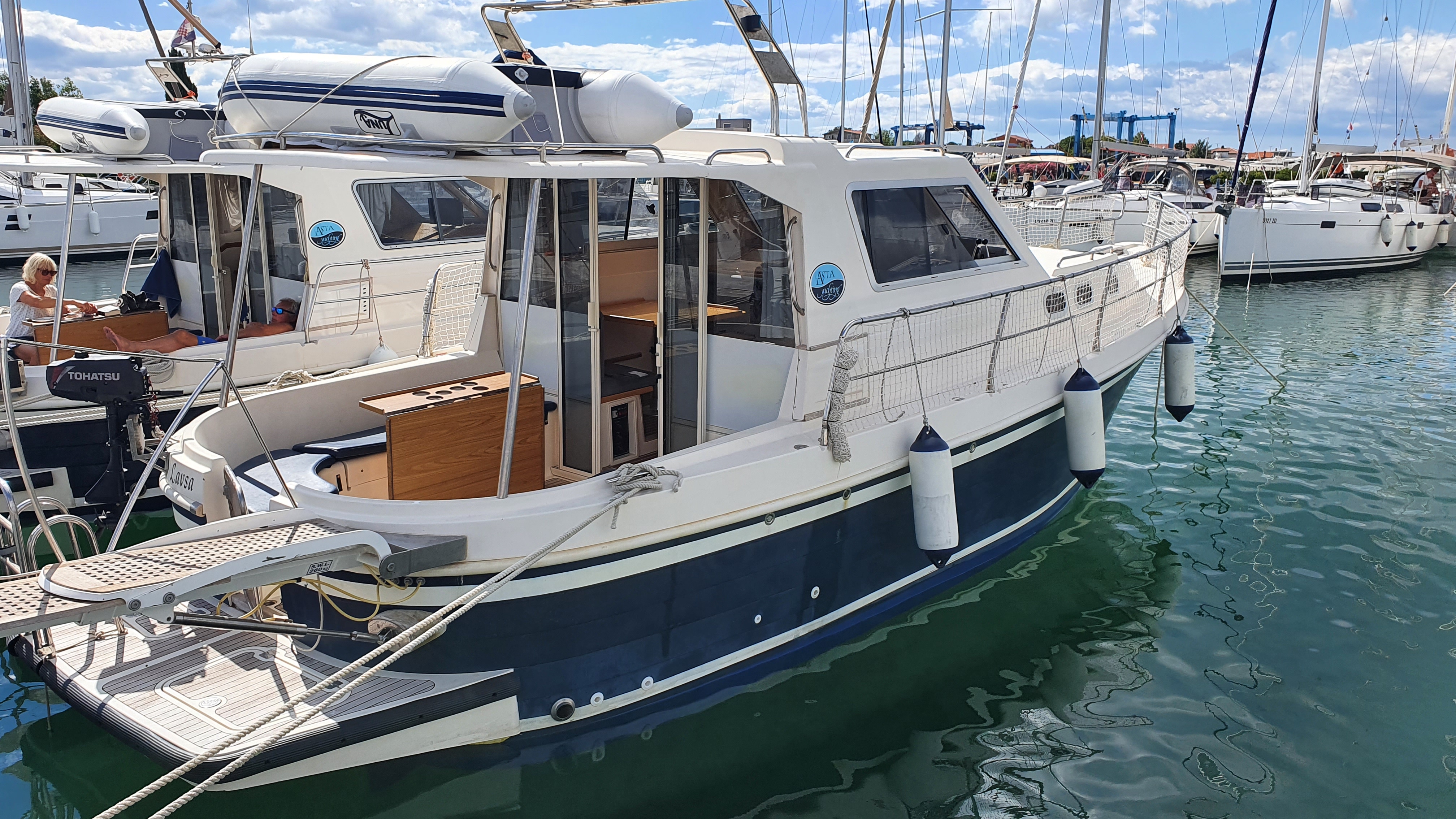 | Outside | Badeplattform, Bootshaken, Buganker, Cockpitdusche, Cockpitpolster, Cockpittisch, Deckbürste, Dieselkanister , Eimer mit Seil, elektr. Ankerwinsch, Fender, Festmacherleinen, Solaranlage, Wasserschlauch |