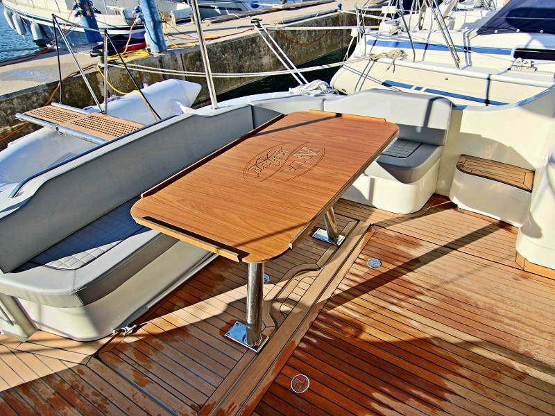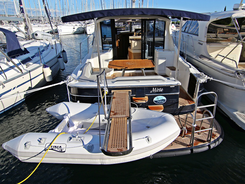 | Outside | Badeplattform, Bootshaken, Buganker, Cockpitdusche, Cockpitpolster, Cockpittisch, Deckbürste, Dieselkanister , Eimer mit Seil, elektr. Ankerwinsch, Fender, Festmacherleinen, Solaranlage, Wasserschlauch |