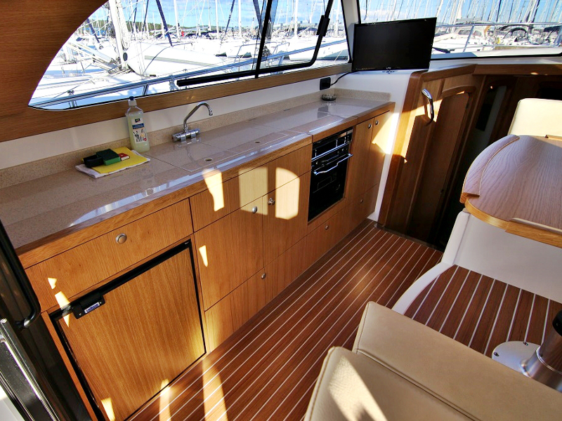 | Safety | Autopilot, Bilgepumpe, Bordapotheke, Bordwerkzeug, Bugstrahlruder, Feststoffschwimmwesten, Feuerlöscher, Flaggen, Lifebelts, Nebelhorn, Notsignale, Reserve-Motoröl, Rettungsbojenlicht, Rettungsring, Taschenlampe, UKW-Funk, Zweitanker |