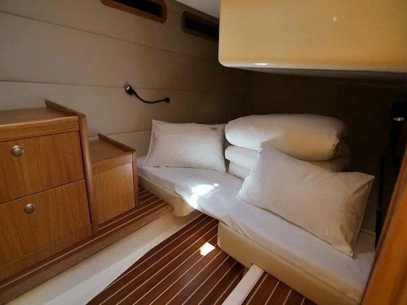 | Safety | Autopilot, Bilgepumpe, Bordapotheke, Bordwerkzeug, Bugstrahlruder, Feststoffschwimmwesten, Feuerlöscher, Flaggen, Lifebelts, Nebelhorn, Notsignale, Reserve-Motoröl, Rettungsbojenlicht, Rettungsring, Taschenlampe, UKW-Funk, Zweitanker |