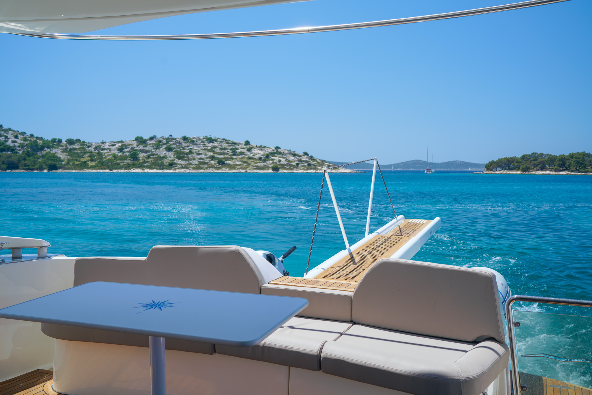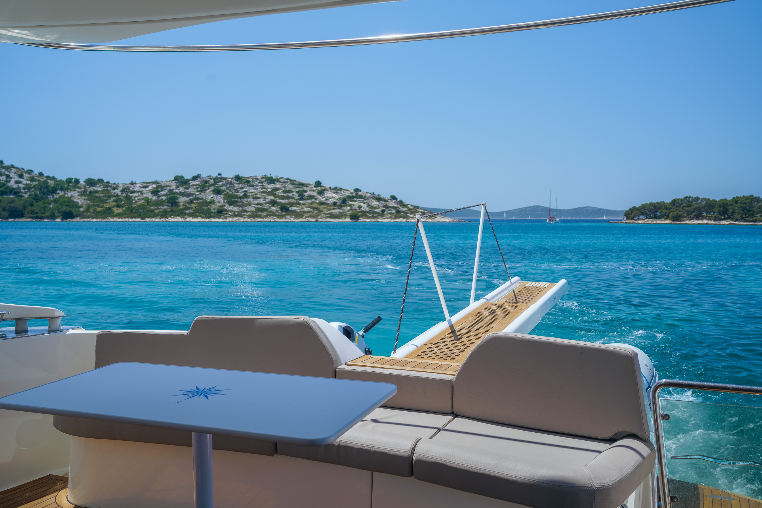 | Outside | Cockpitdusche, elektr. Ankerwinsch, hydraul. Gangway, Teak im Cockpit |