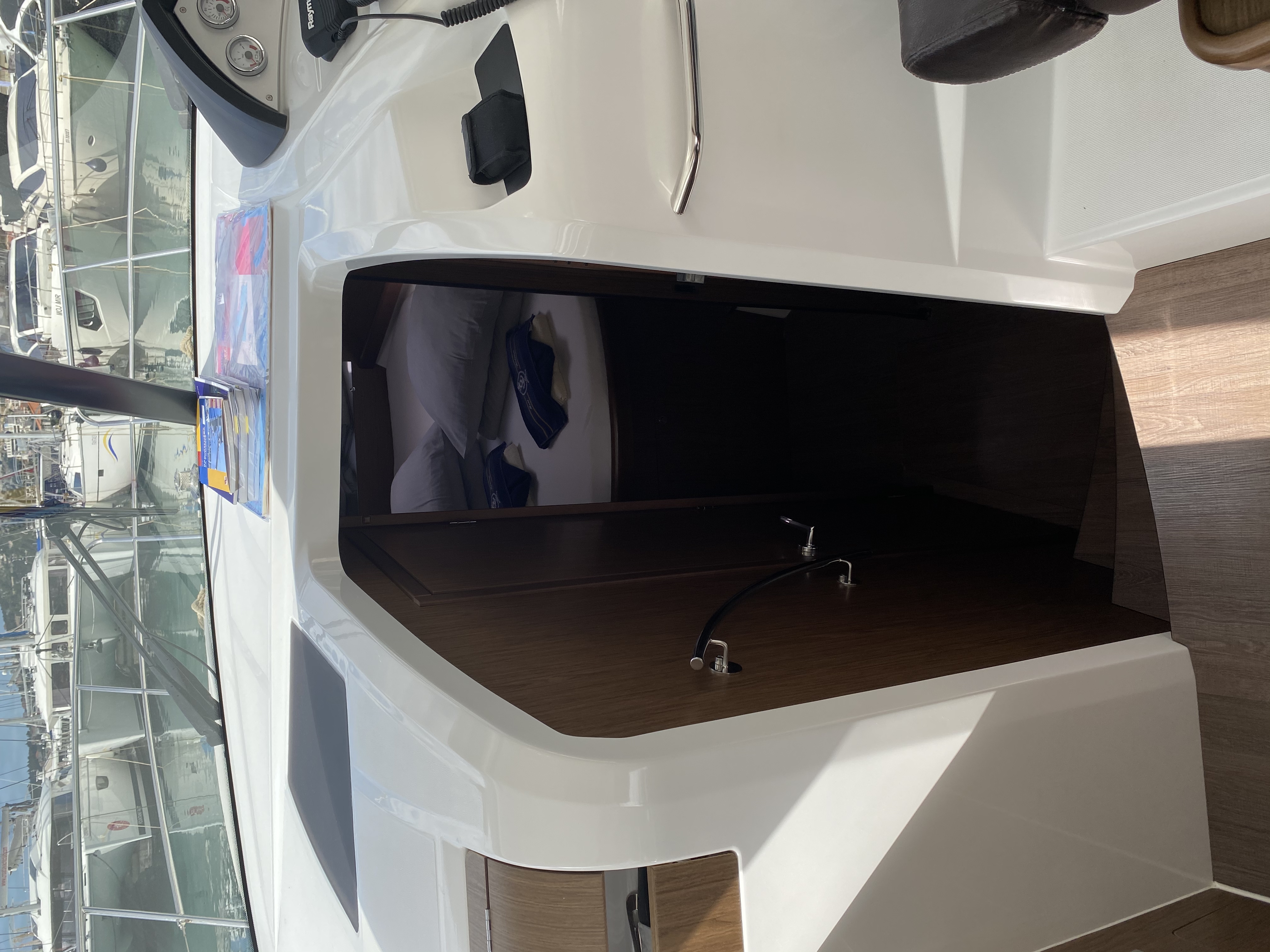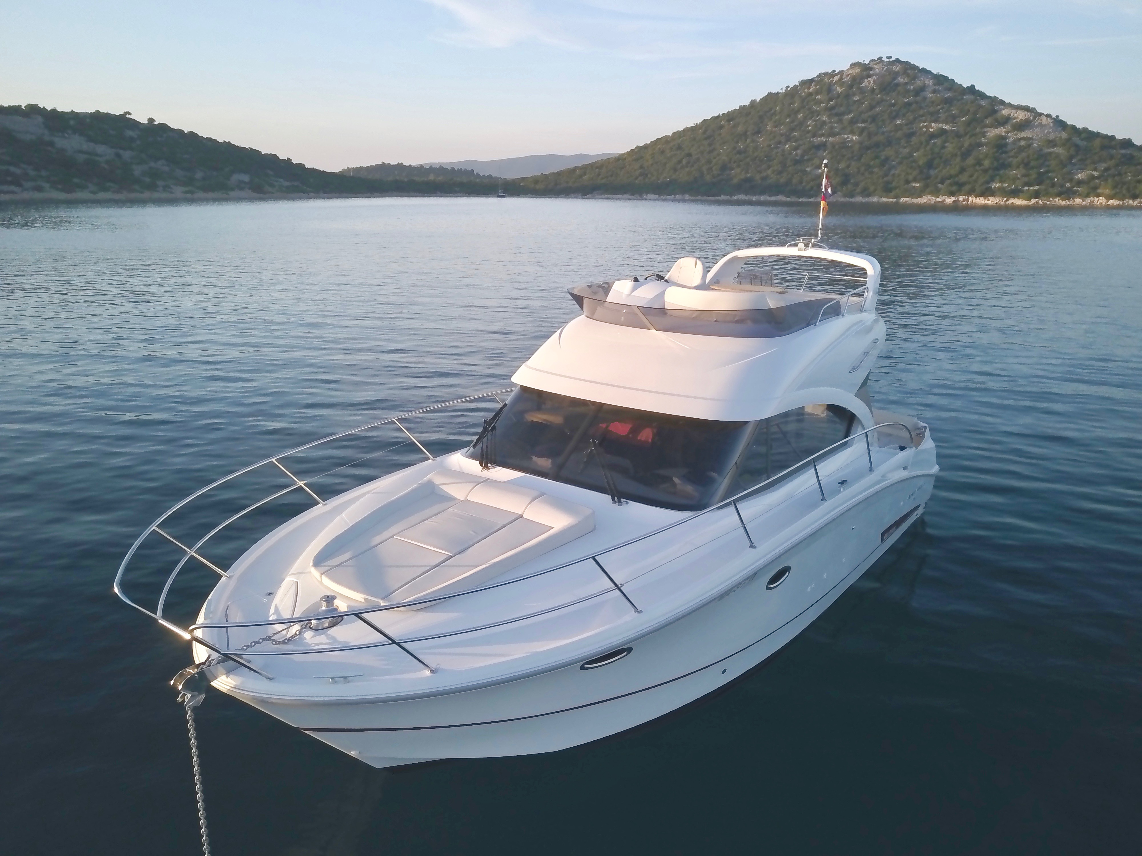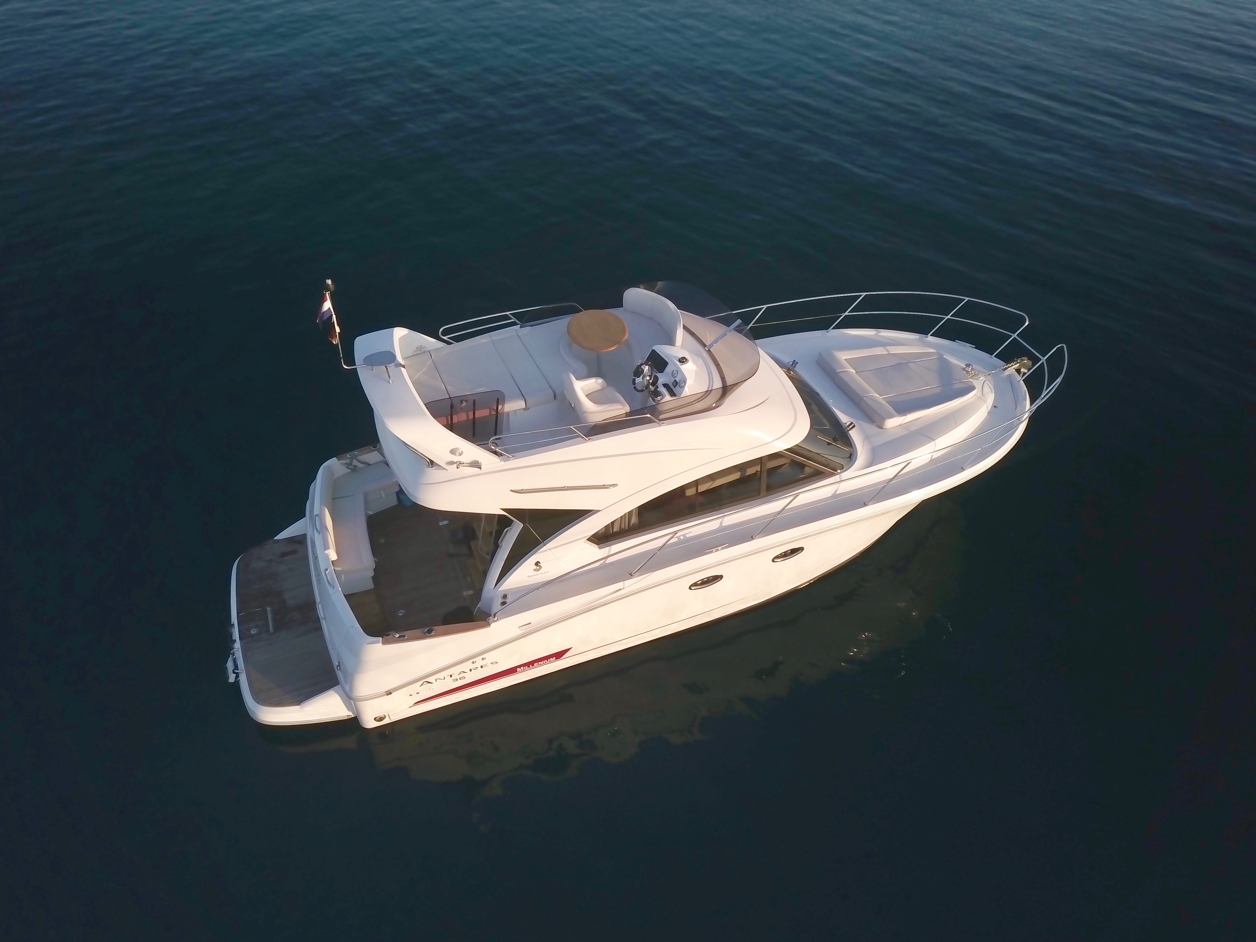 | Outside | Anker mit Kette, Badeplattform, Biminitop, Cockpitdusche, Cockpitlautsprecher, hydraul. Gangway, Teakdeck, Unterwasserbeleuchtung |