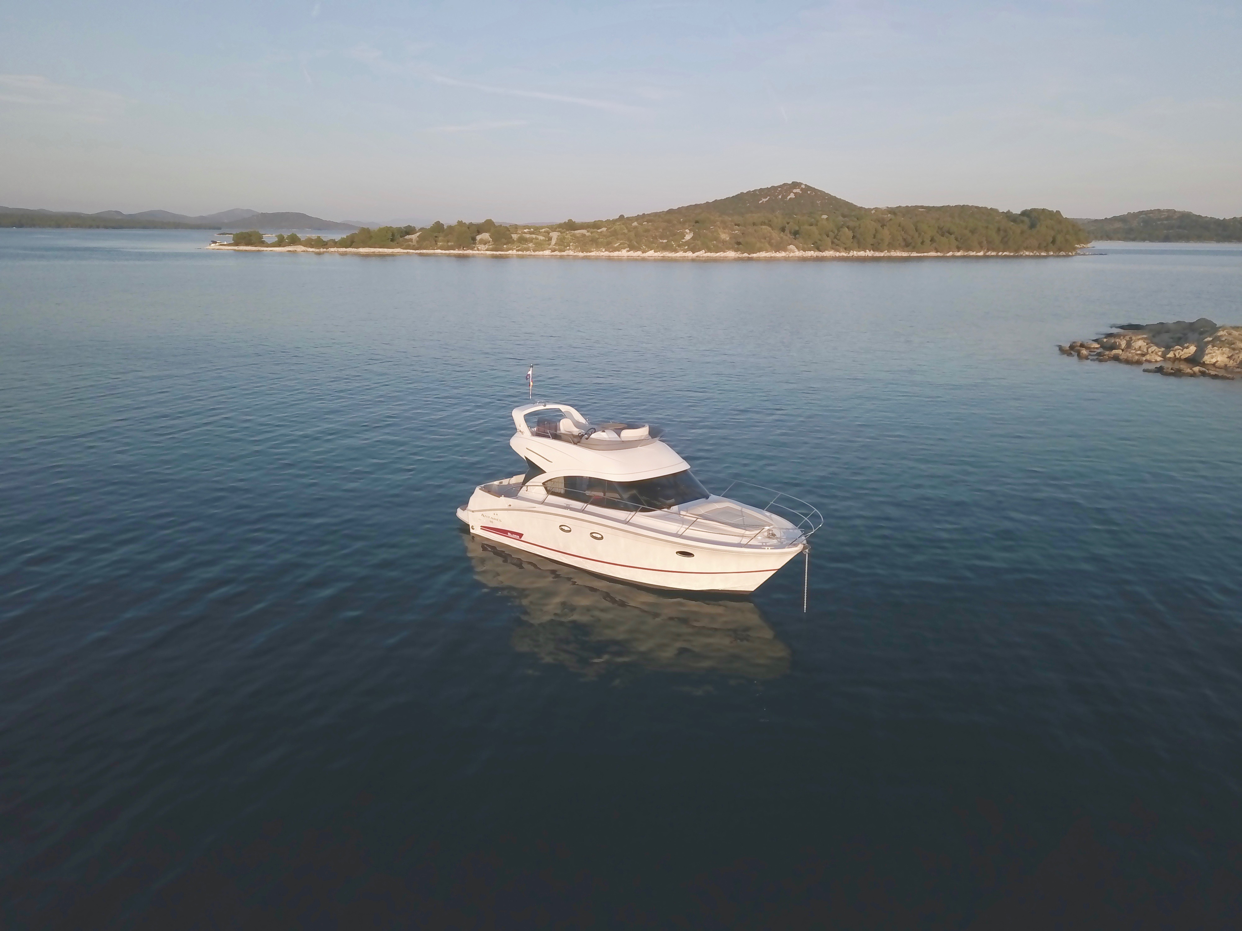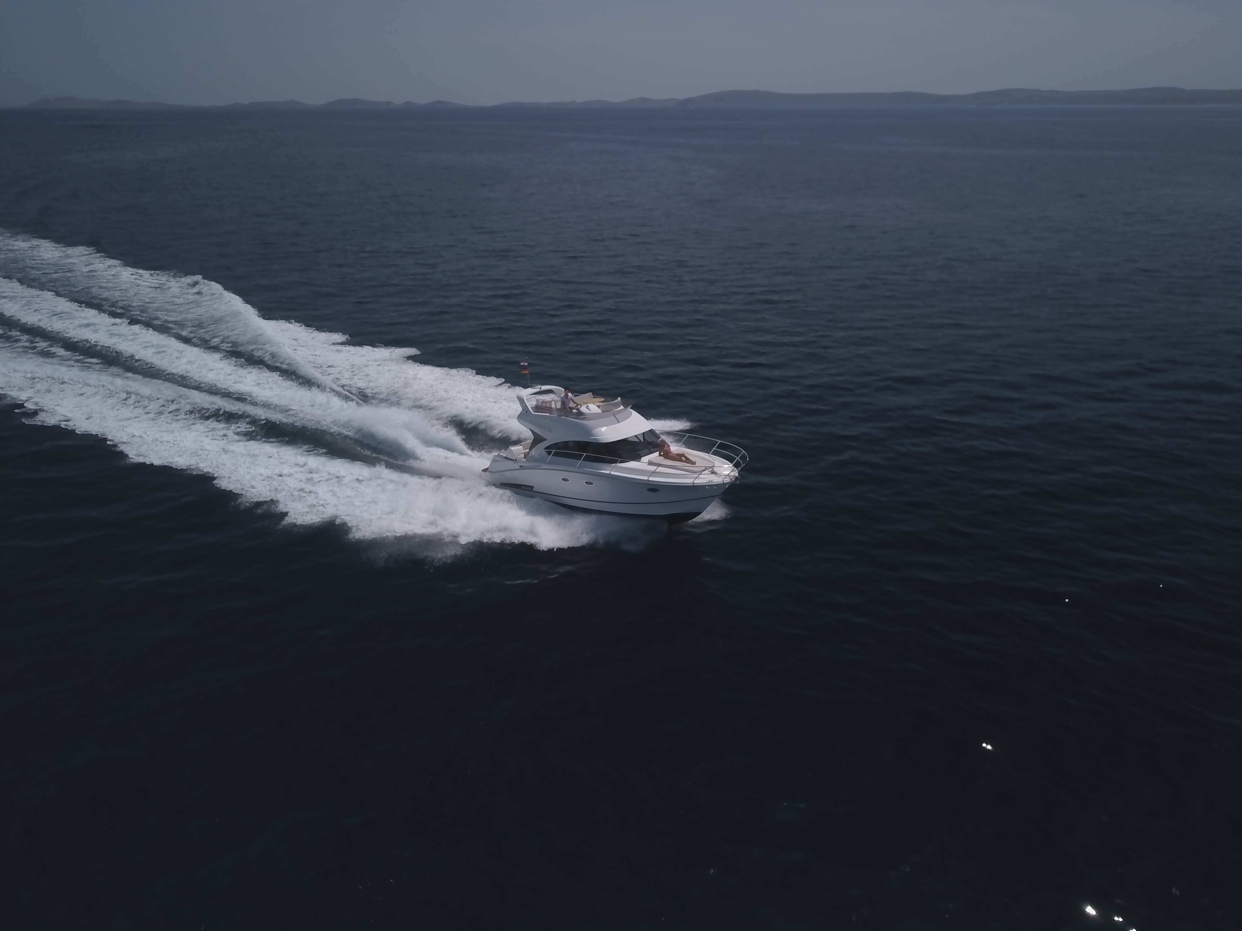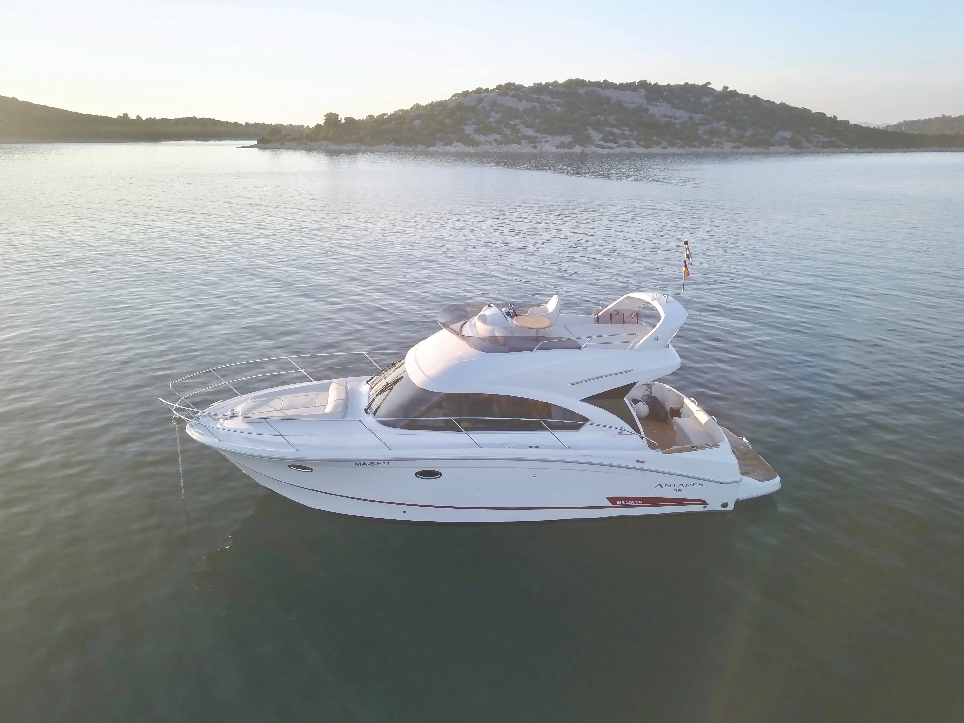 | Outside | Anker mit Kette, Badeplattform, Biminitop, Cockpitdusche, Cockpitlautsprecher, hydraul. Gangway, Teakdeck, Unterwasserbeleuchtung |
