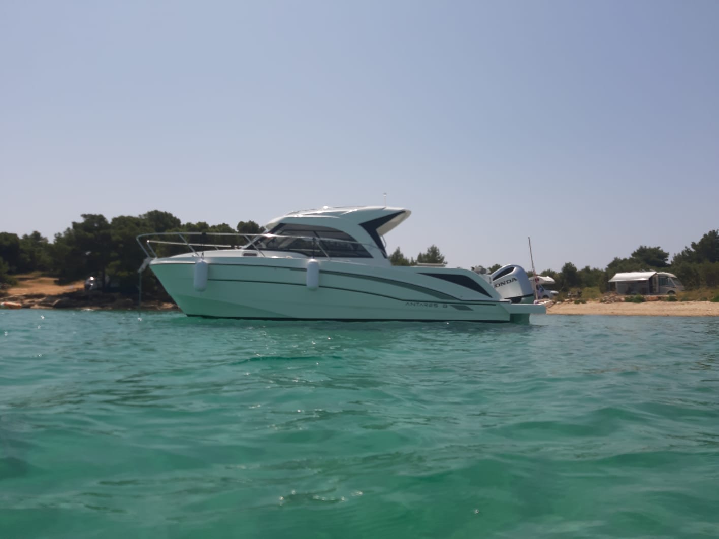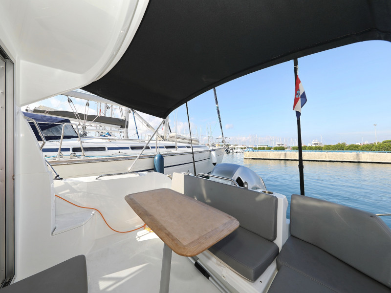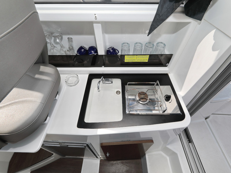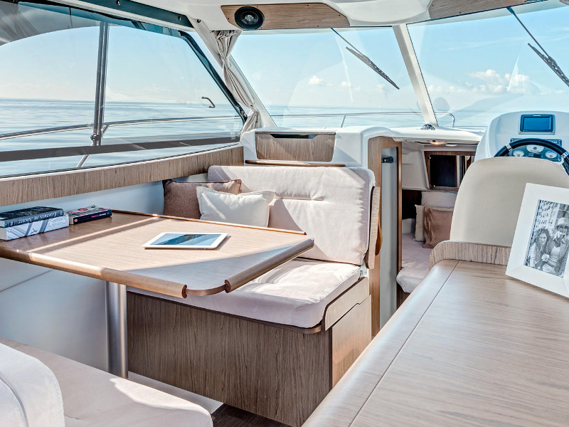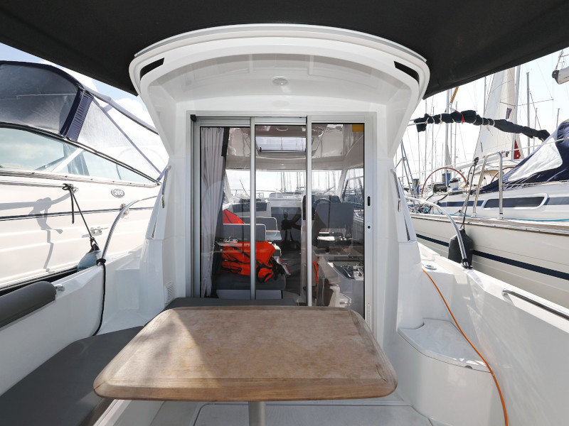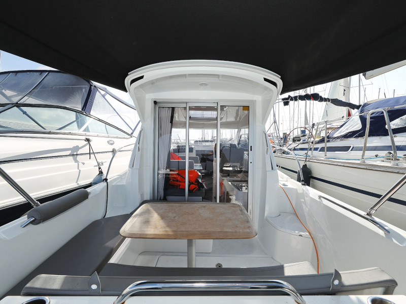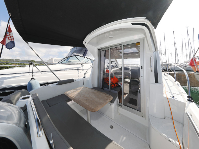 | Outside | Anker mit Kette, Biminitop, Cockpitdusche, Cockpitpolster, Cockpittisch, elektr. Ankerwinsch, Fender |