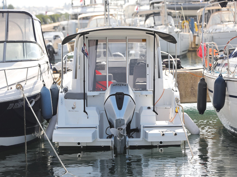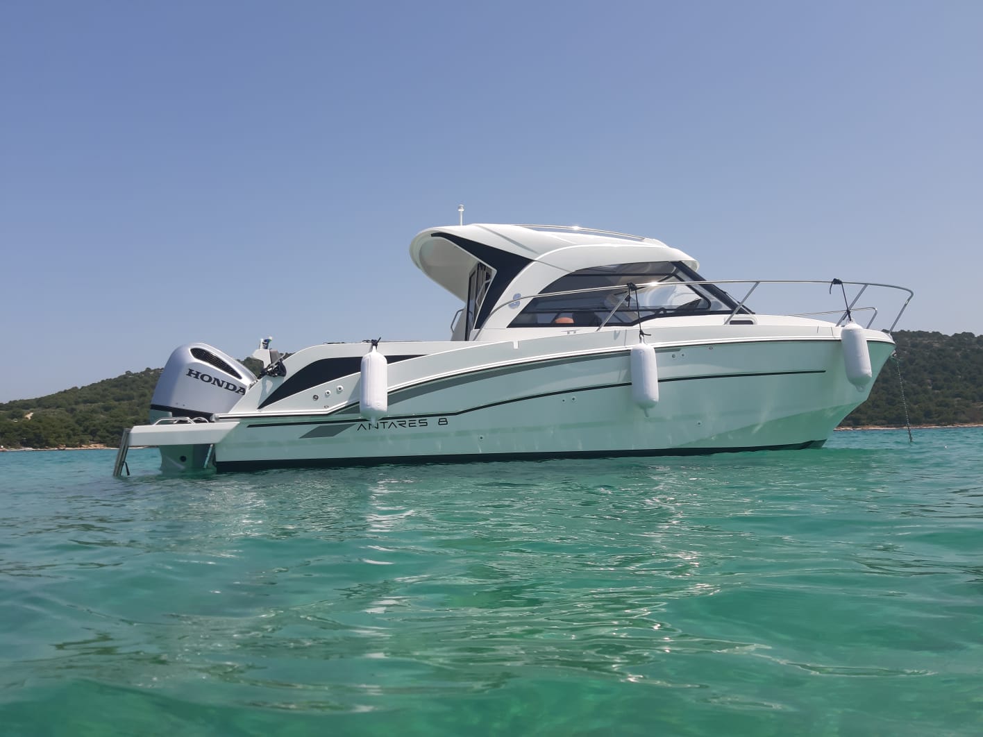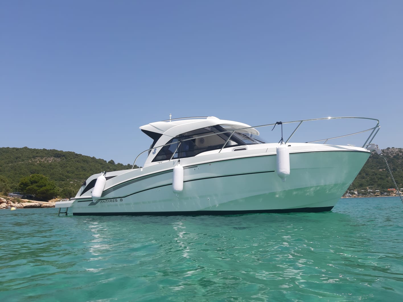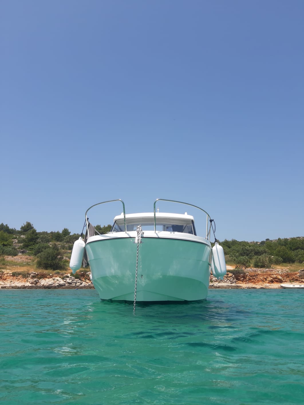 | Outside | Anker mit Kette, Biminitop, Cockpitdusche, Cockpitpolster, Cockpittisch, elektr. Ankerwinsch, Fender |